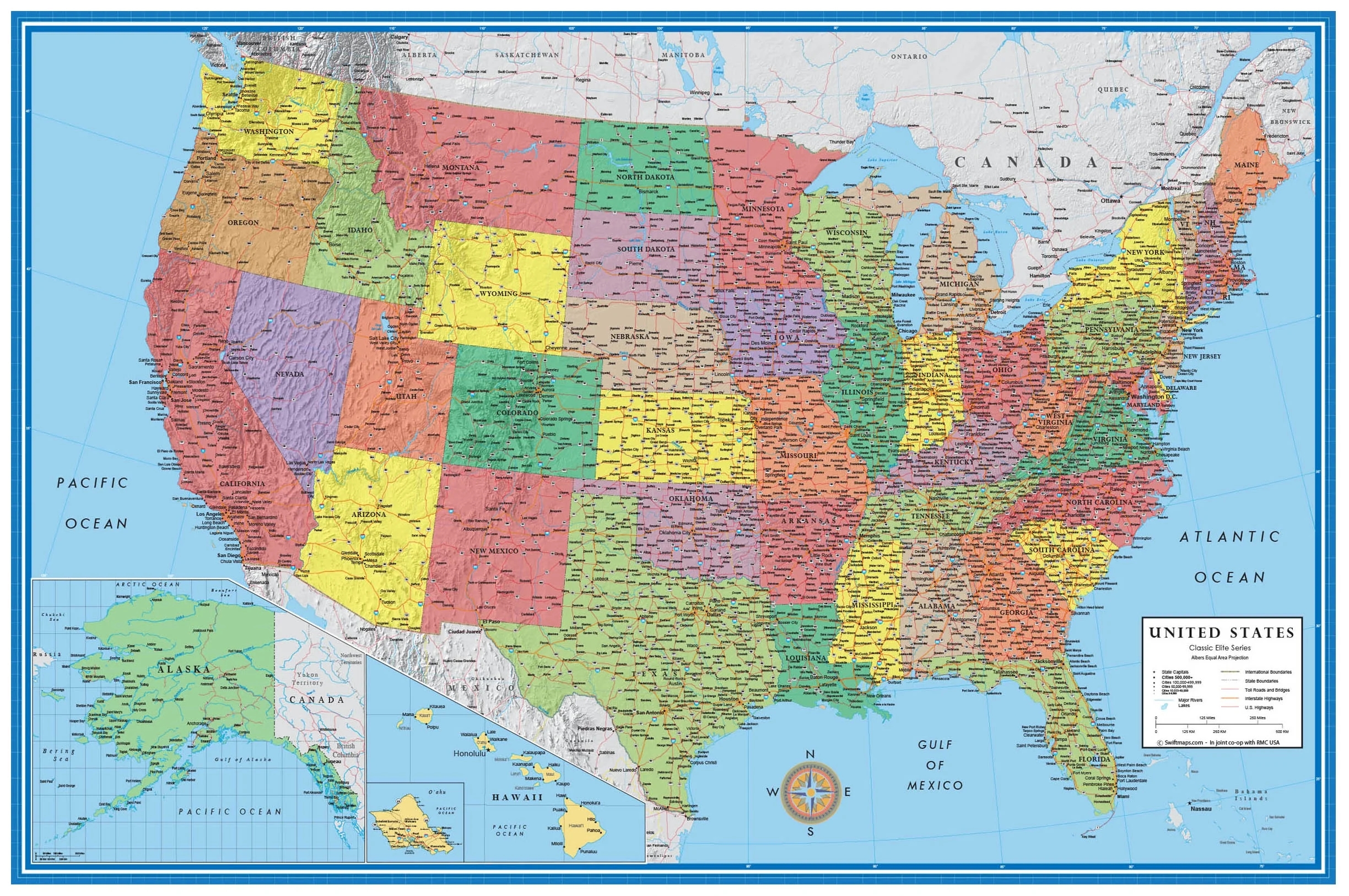 24 X 36 United States Classic Premier Laminated Wall Map Poster Walmart
