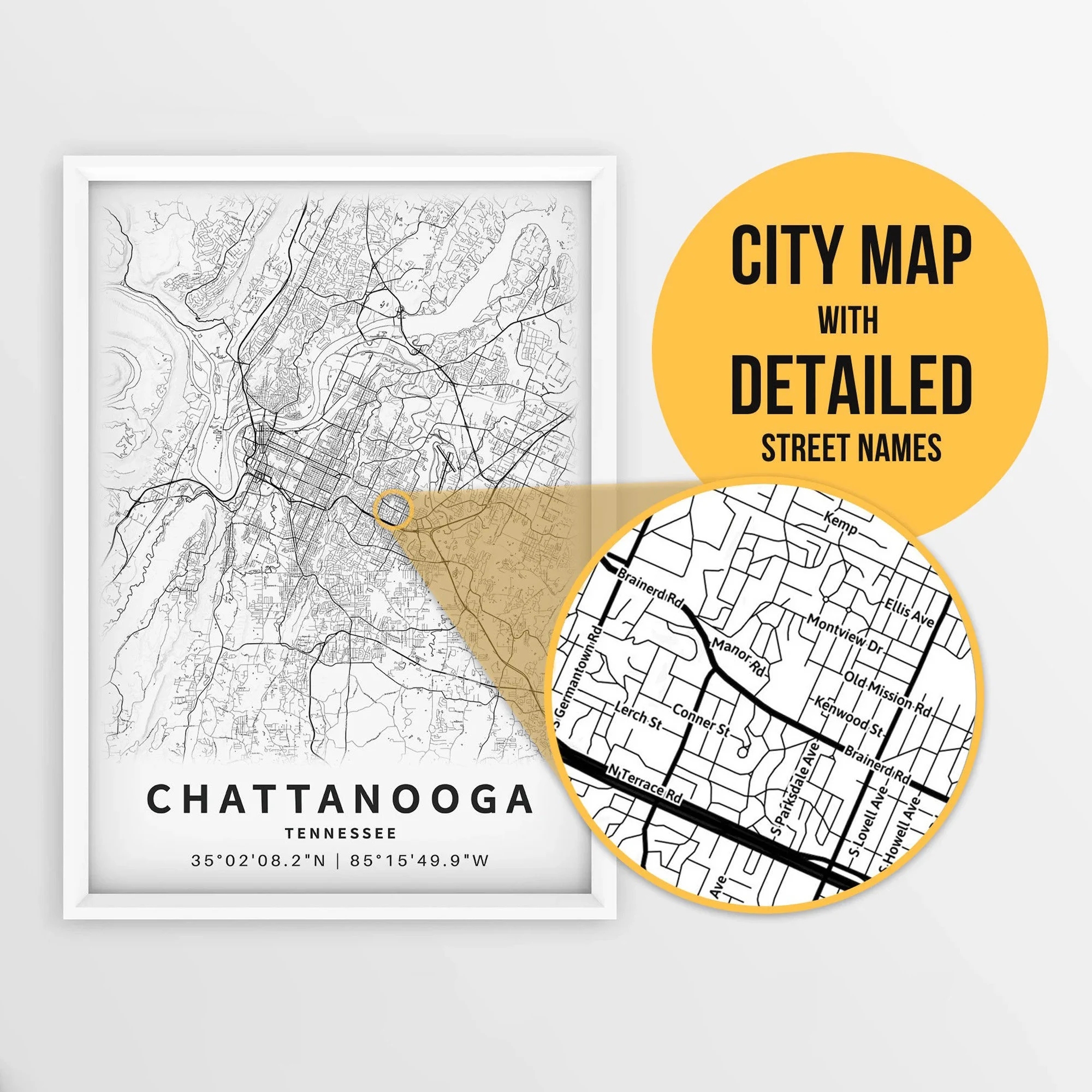 Printable Map Of Chattanooga Tennessee USA With Street Names Instant Download City Map Travel Gift City Poster Road Map Print Etsy