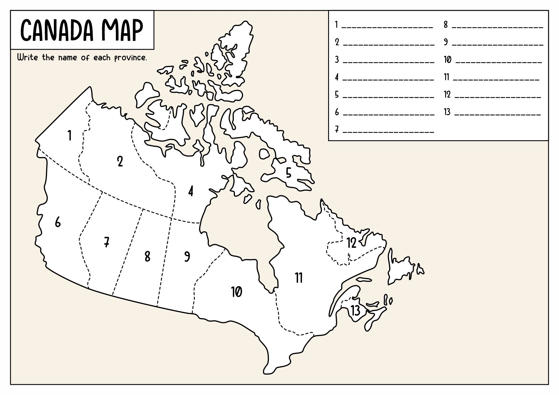 Our Canada province blank map printable with numbers is designed to be clear and easy to read. Each province is outlined clearly, and numbers are provided for easy identification. Whether you’re studying for a test or just curious about Canadian geography, this map is a valuable resource.