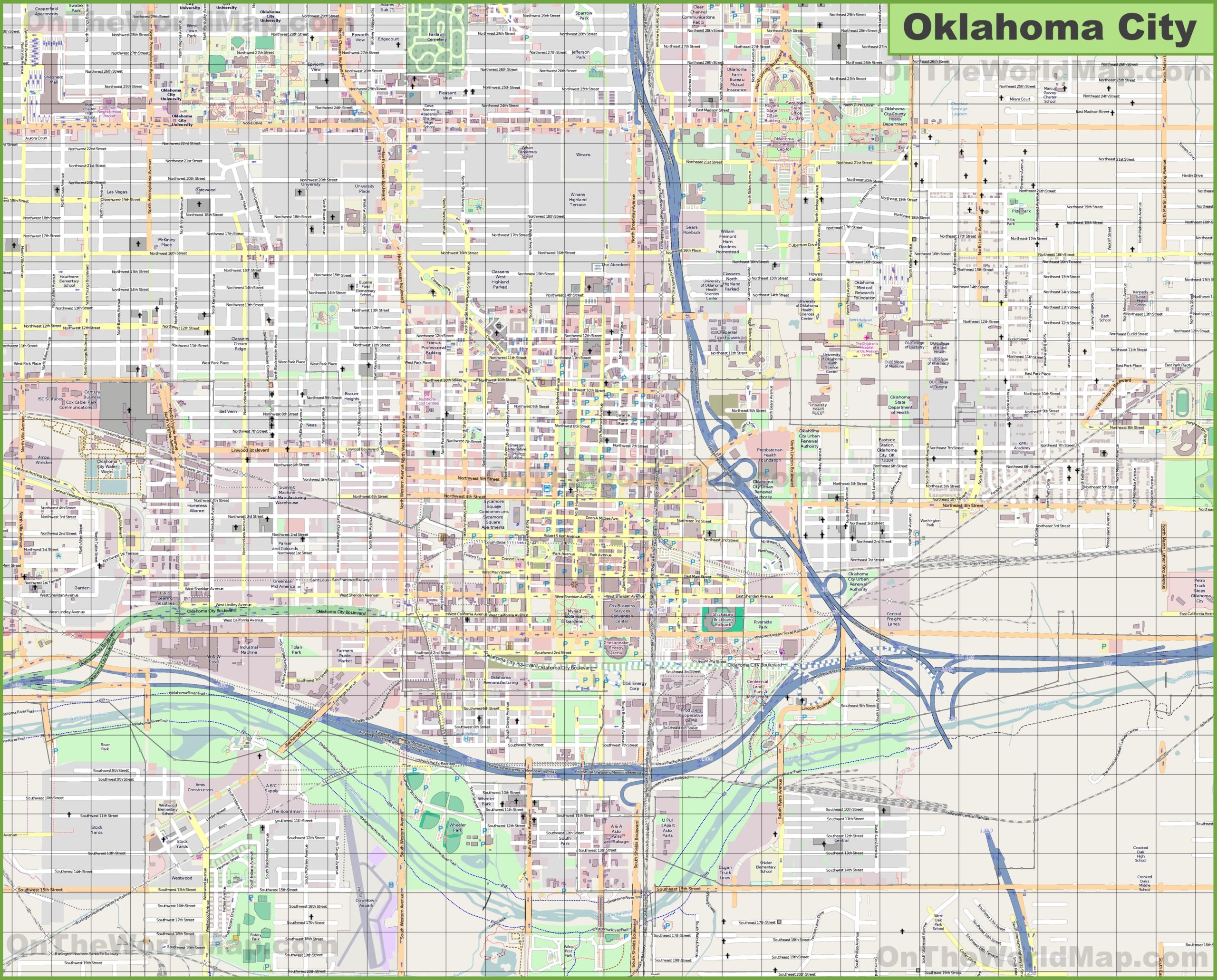 Large Detailed Map Of Oklahoma City Ontheworldmap