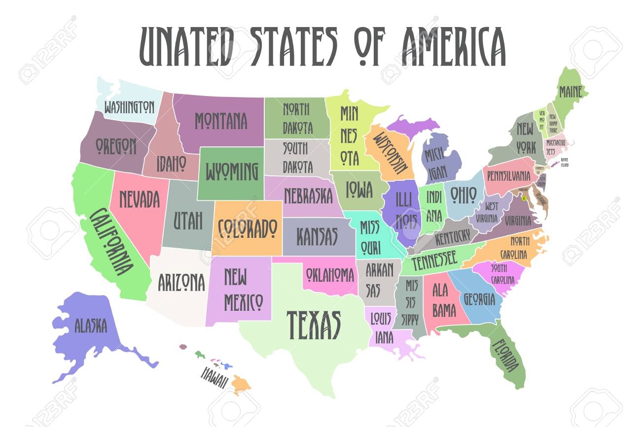 Colored Poster Map Of United States Of America With State Names Black And White Print Map Of USA Royalty Free SVG Cliparts Vectors And Stock Illustration Image 104937617