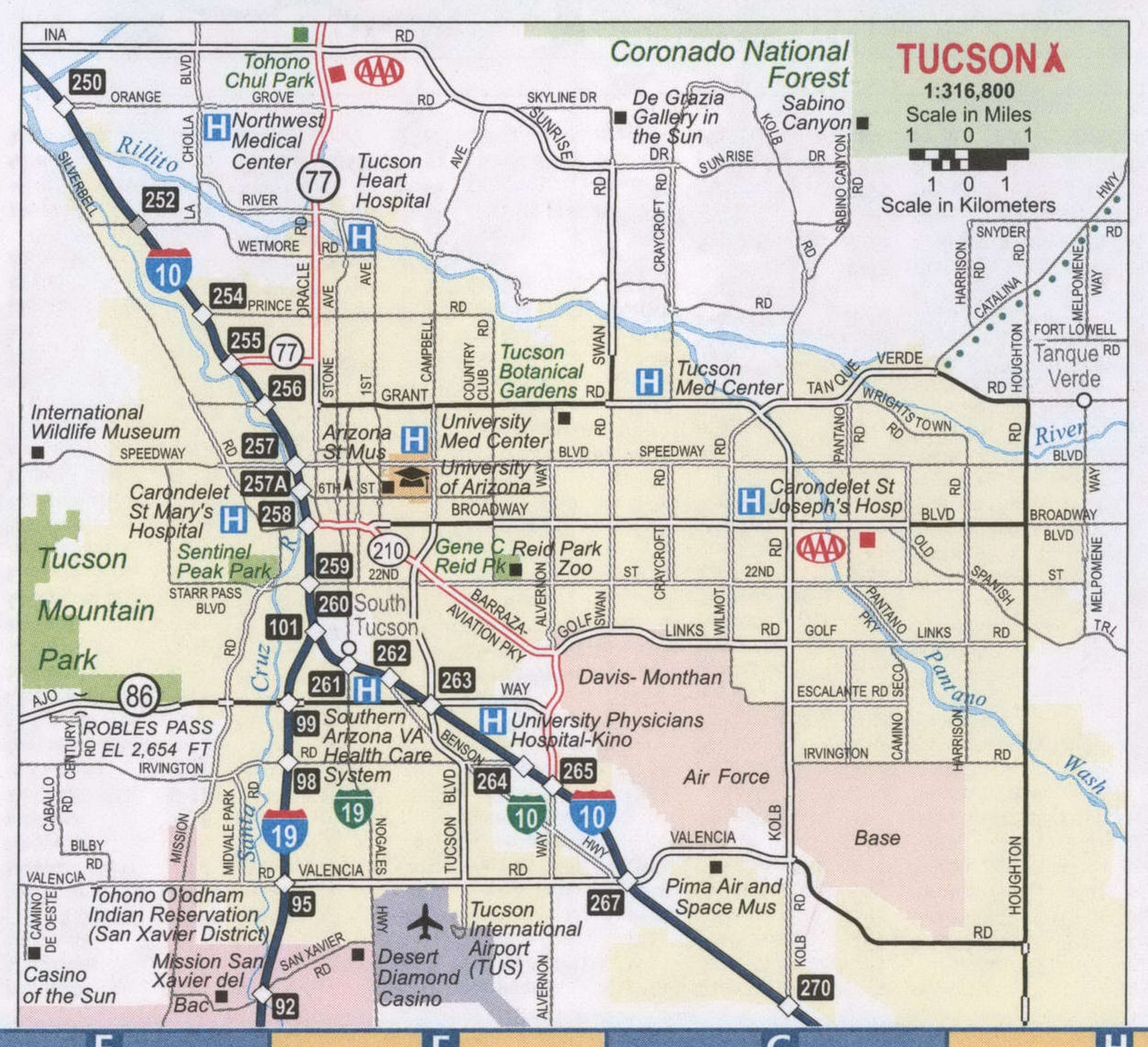Tucson AZ Road Map Free Map Highway Tucson City Surrounding Area