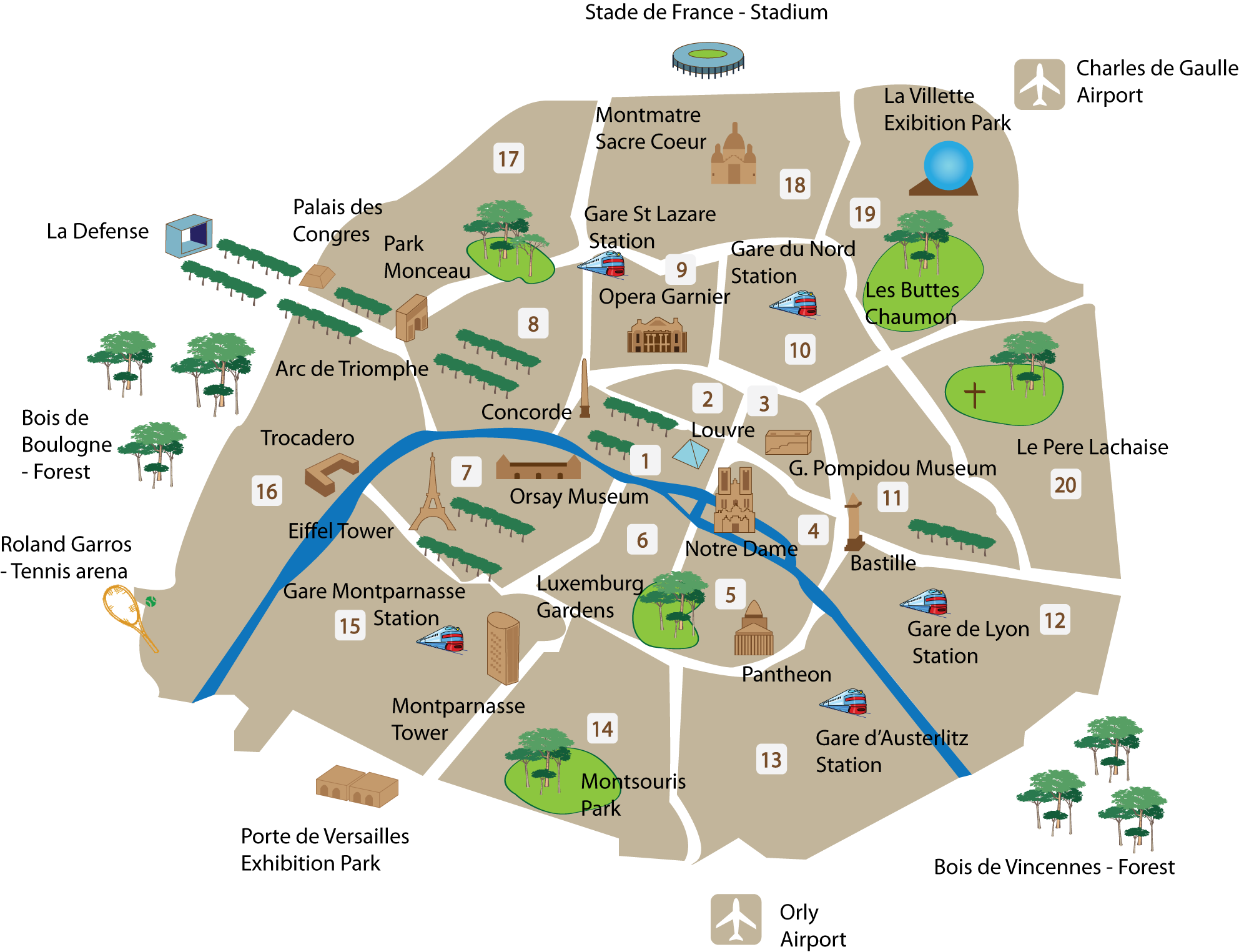 Paris Main Districts Paris Map France Just For You
