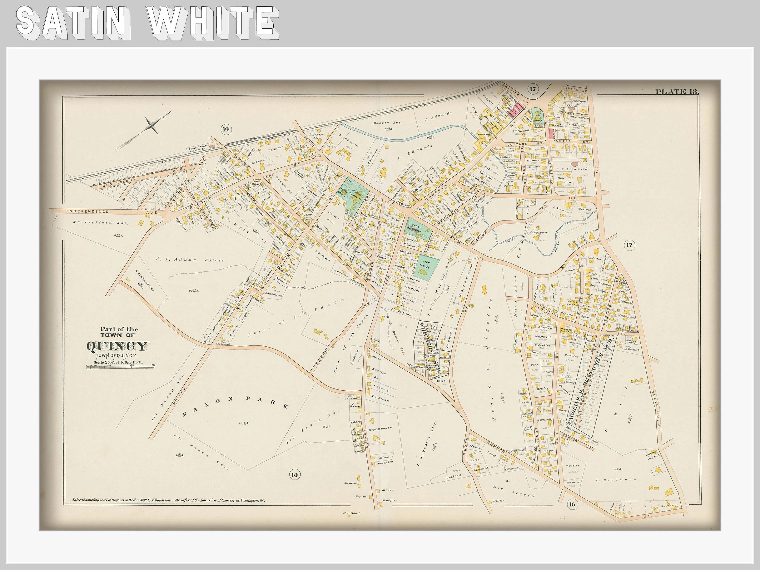 Town Of QUINCY Massachusetts 1888 Map Etsy Australia