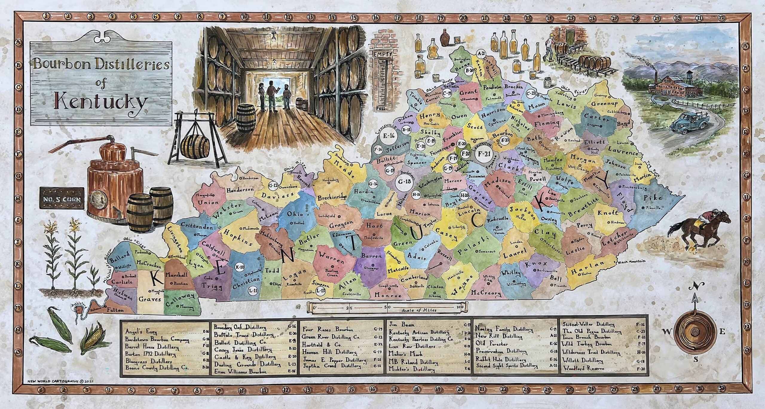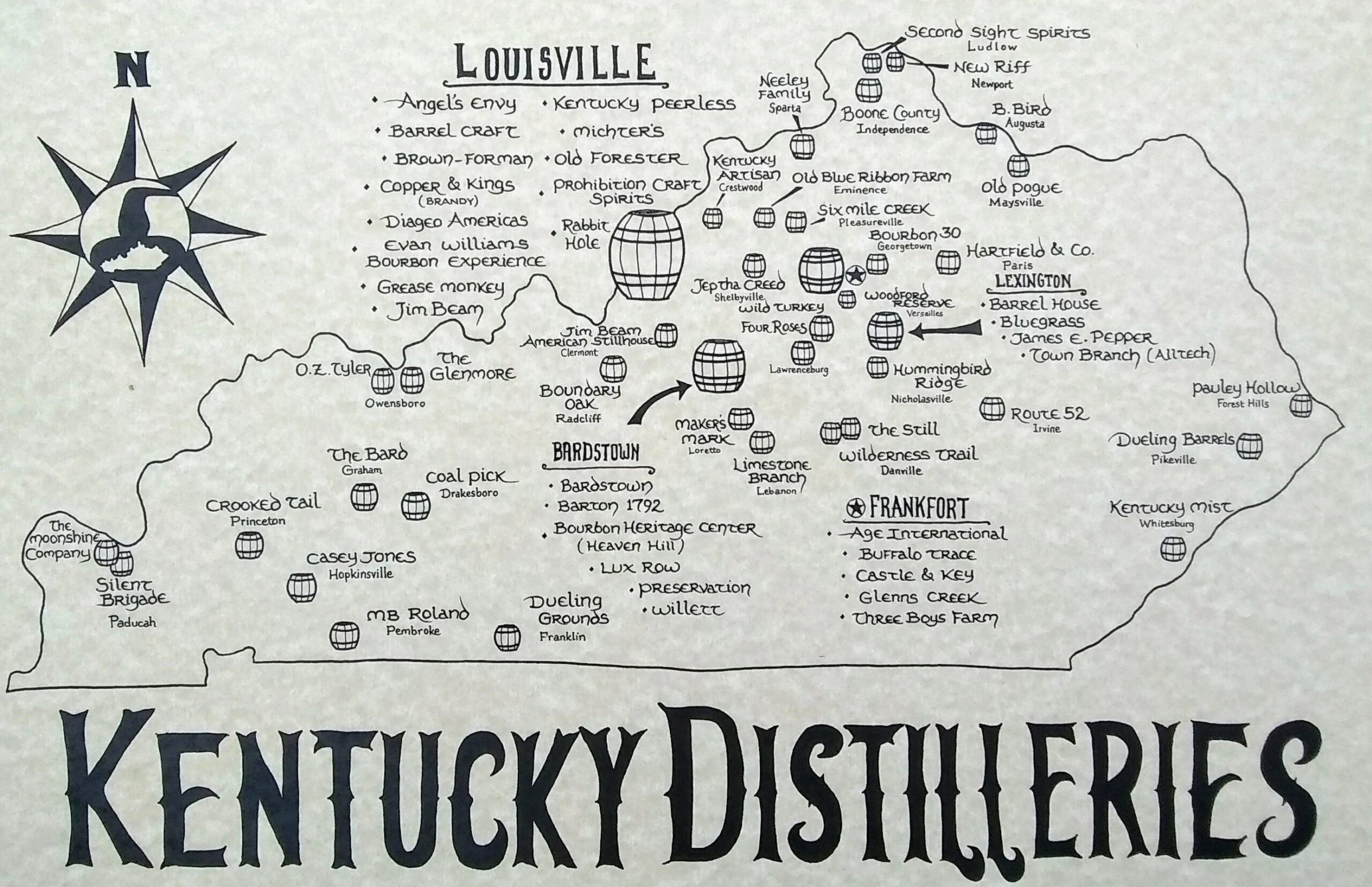 Kentucky Distilleries Map Etsy
