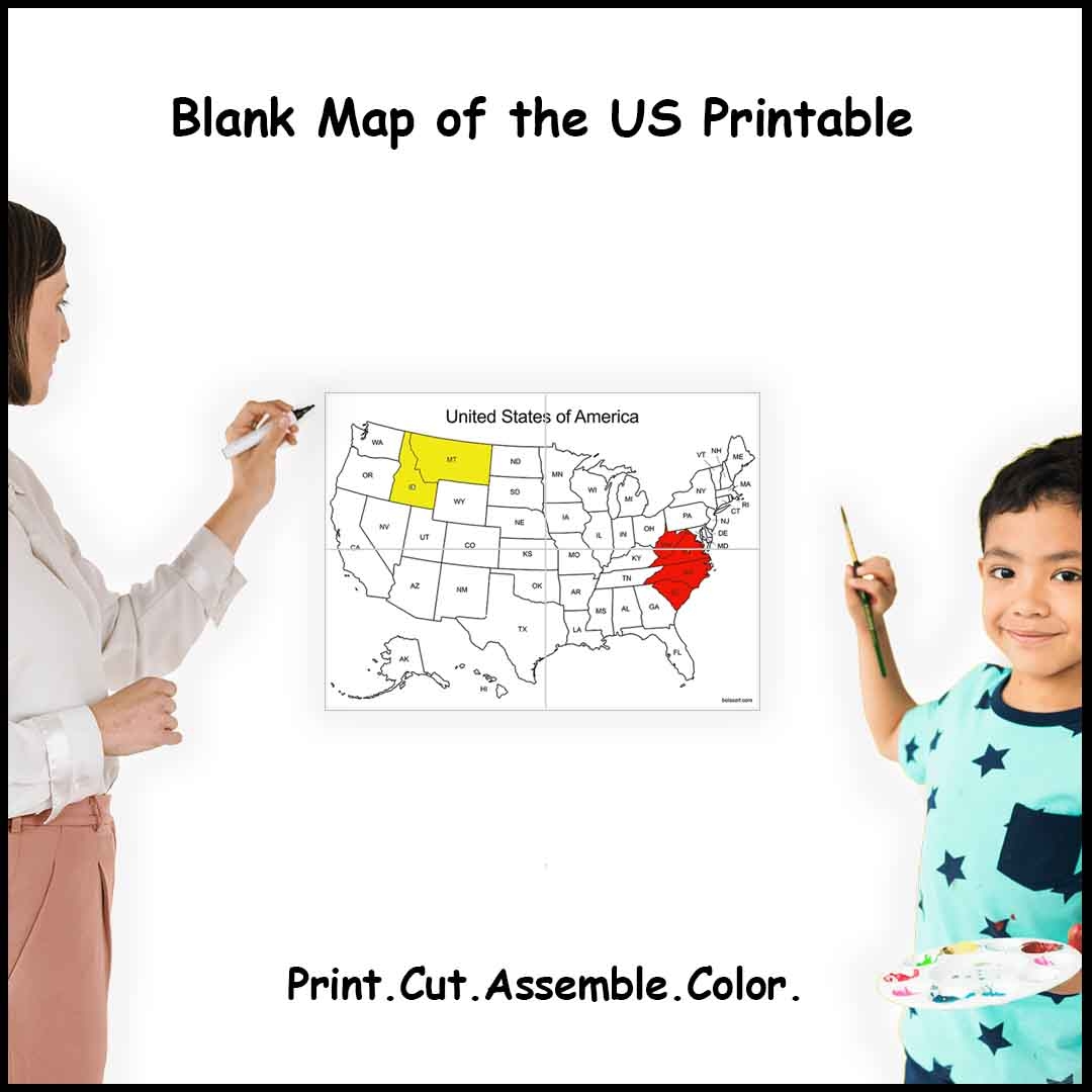 Printable Map Of The United States Sizes 4 9 Or 16 Sheets Of Paper