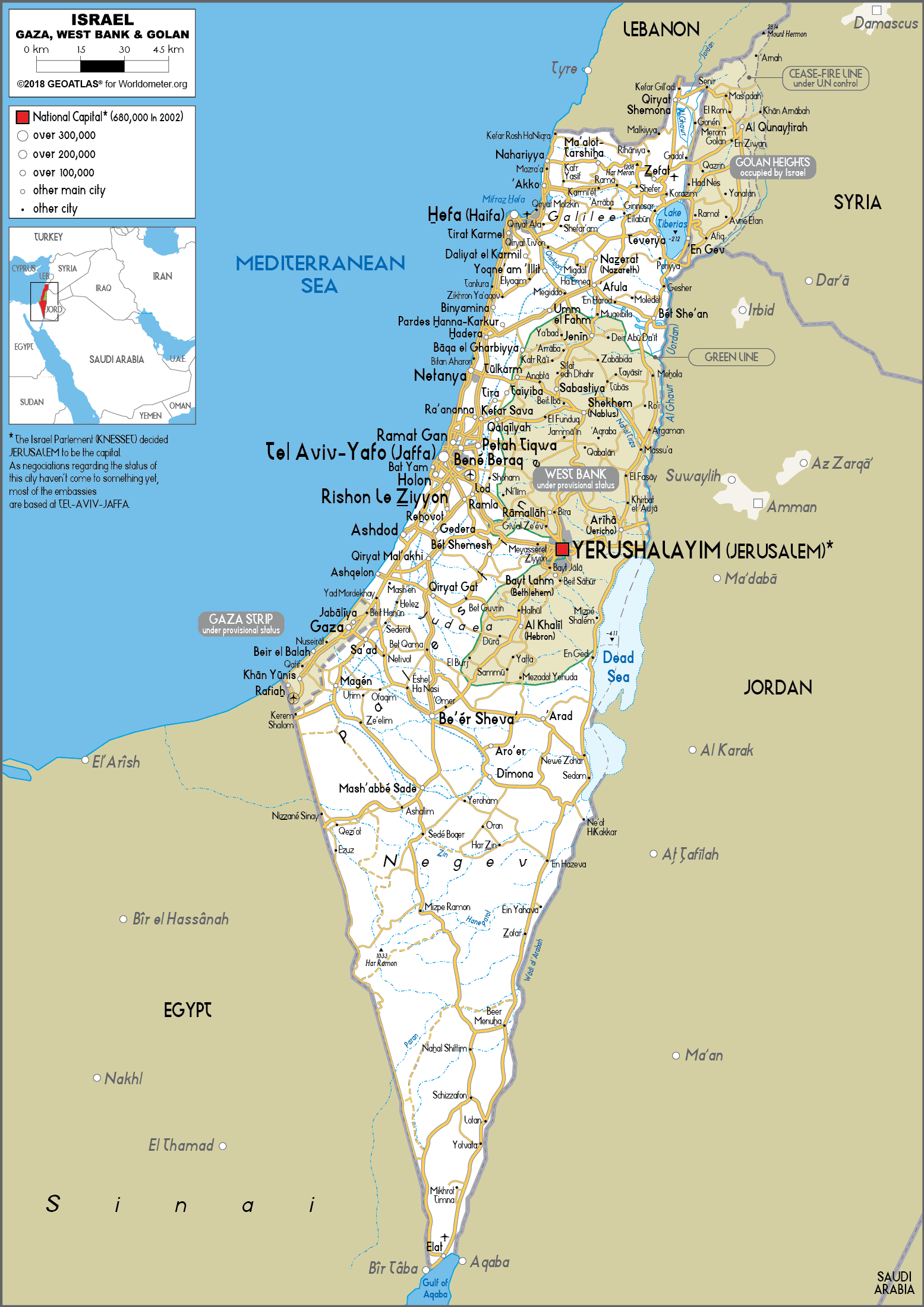 Large Size Road Map Of Israel Worldometer