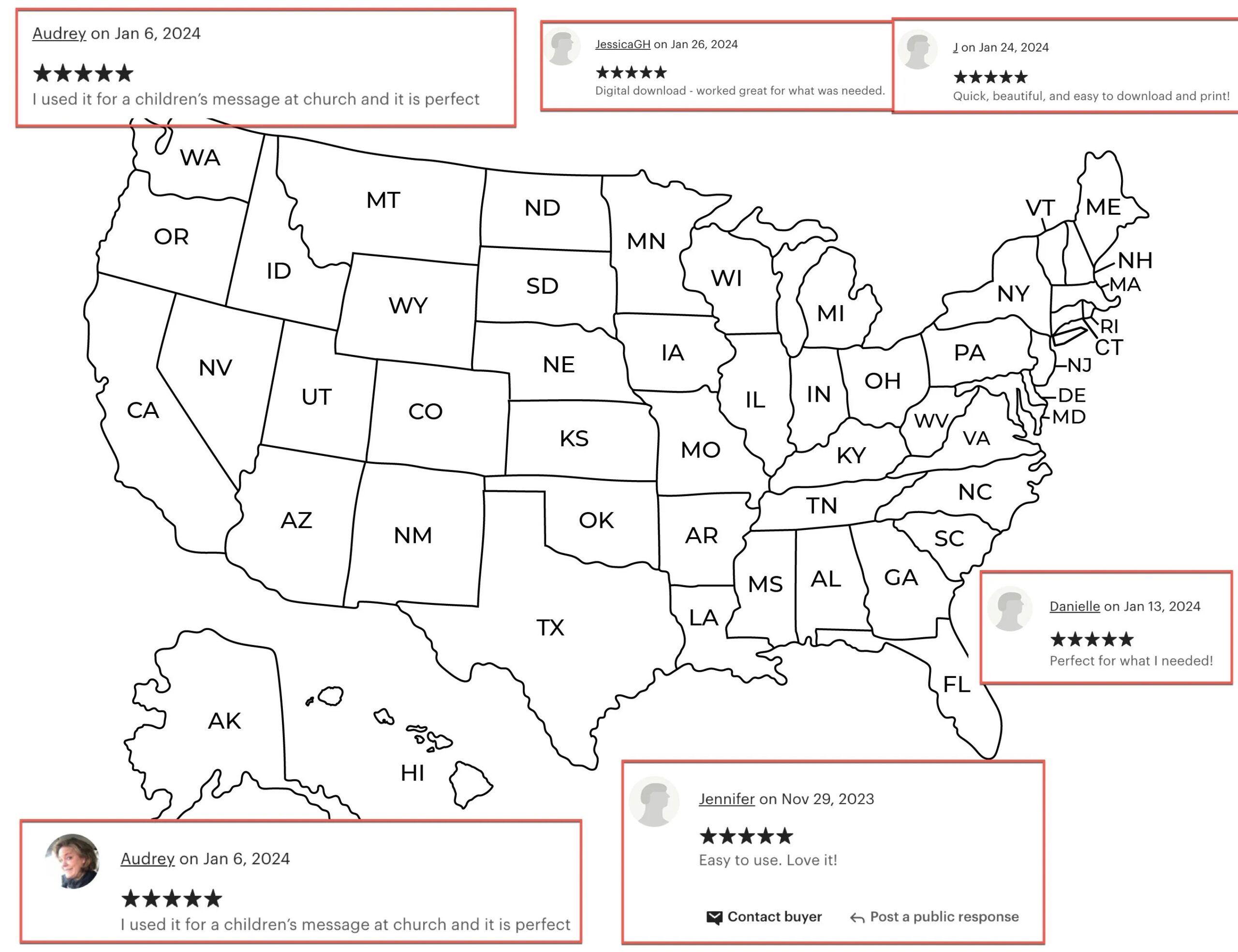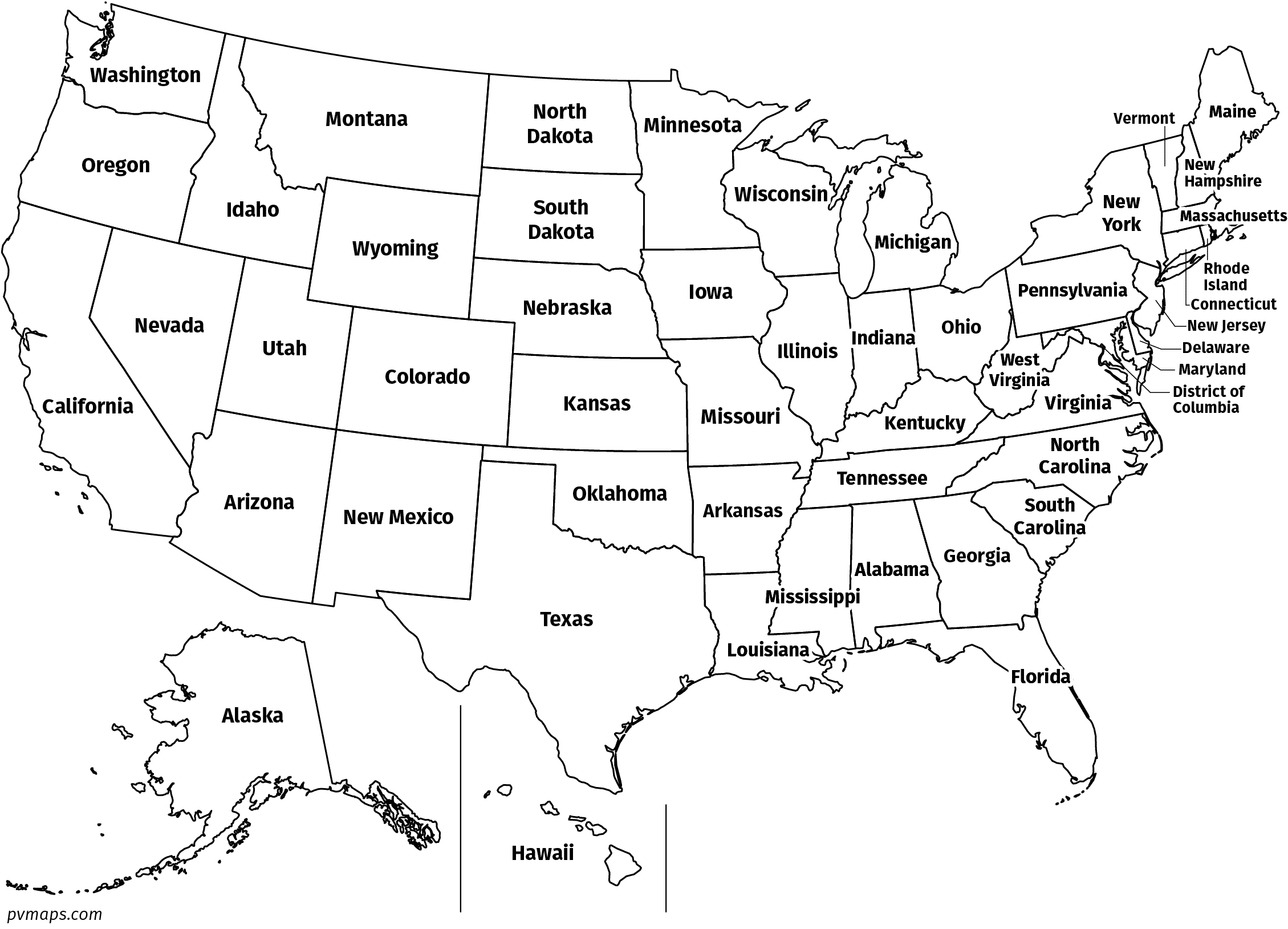 United States USA Map With States Labeled Printable Black And White Etsy