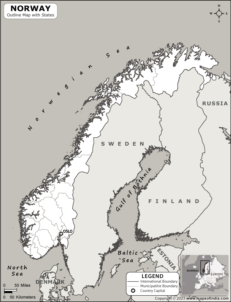Norway Outline Map Norway Outline Map With State Boundaries