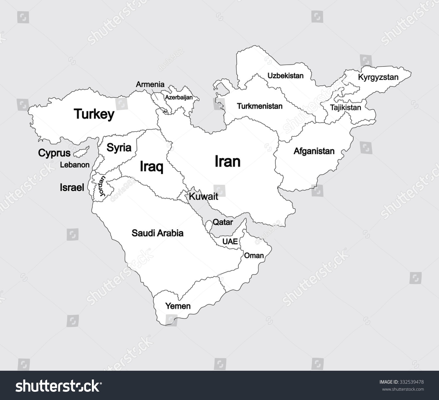 Outline Map Middle East Asia Stock Vector Royalty Free 344943734 Shutterstock