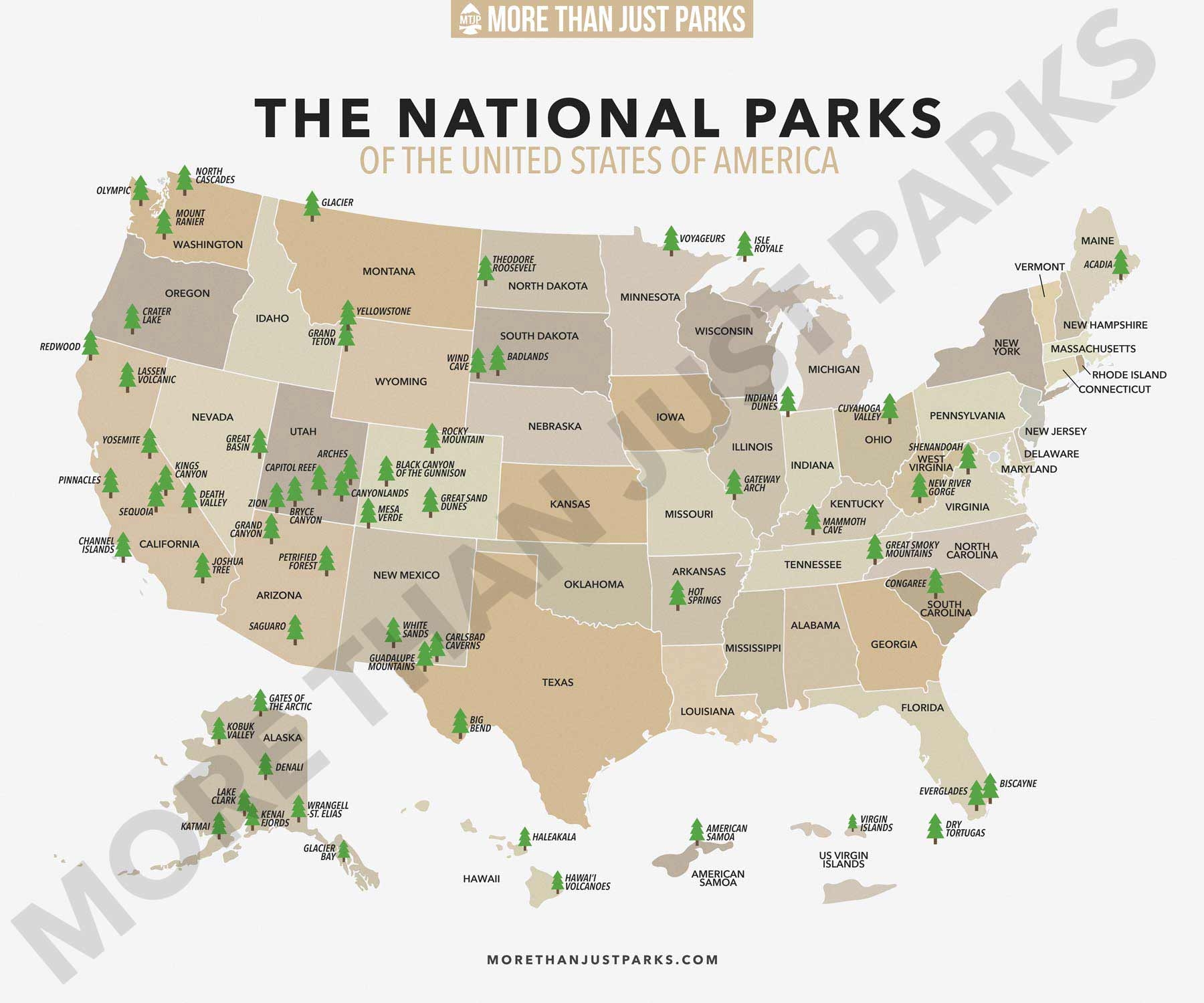 COMPLETE National Parks List 2024 Printable MAP