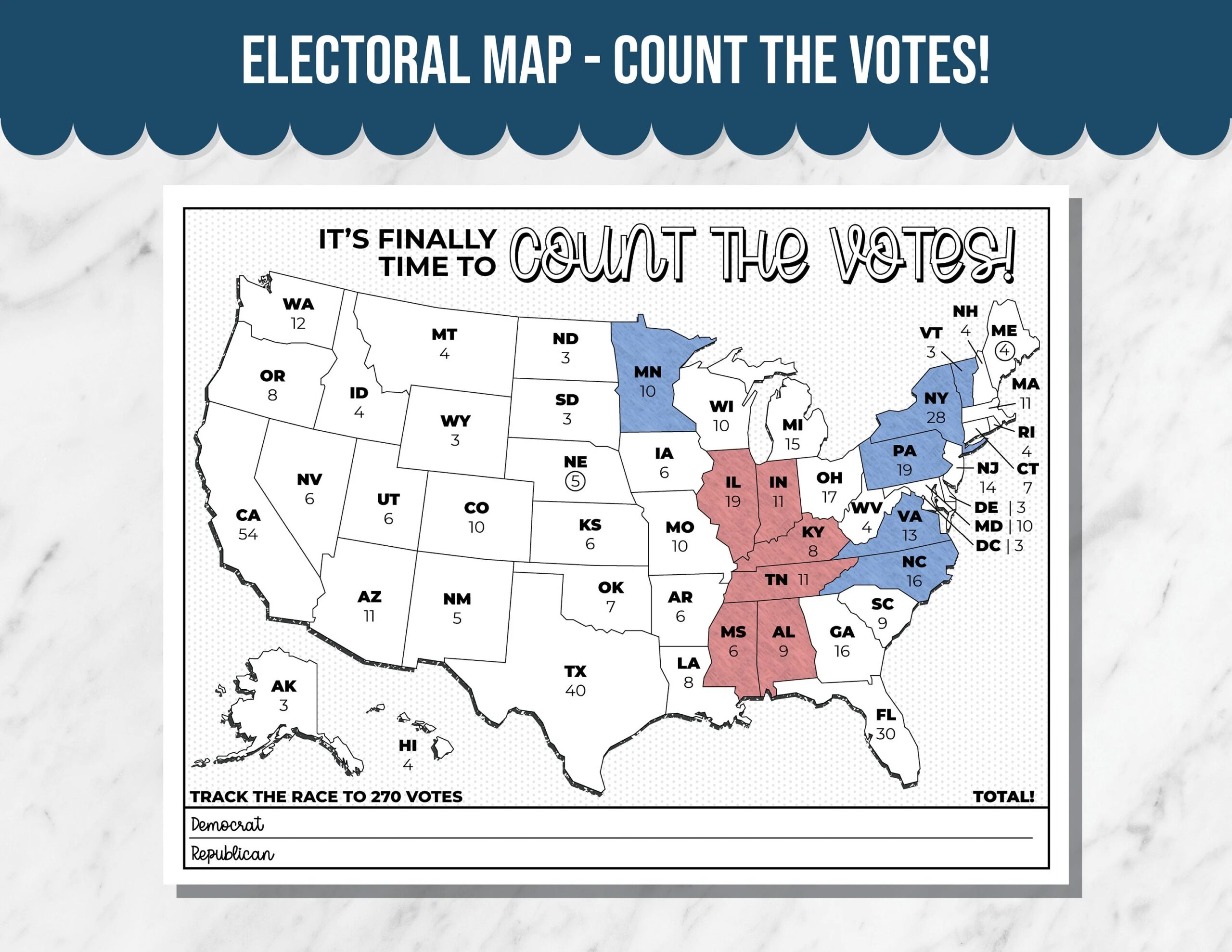 Electoral Map For Election Results Printable Coloring Page Etsy