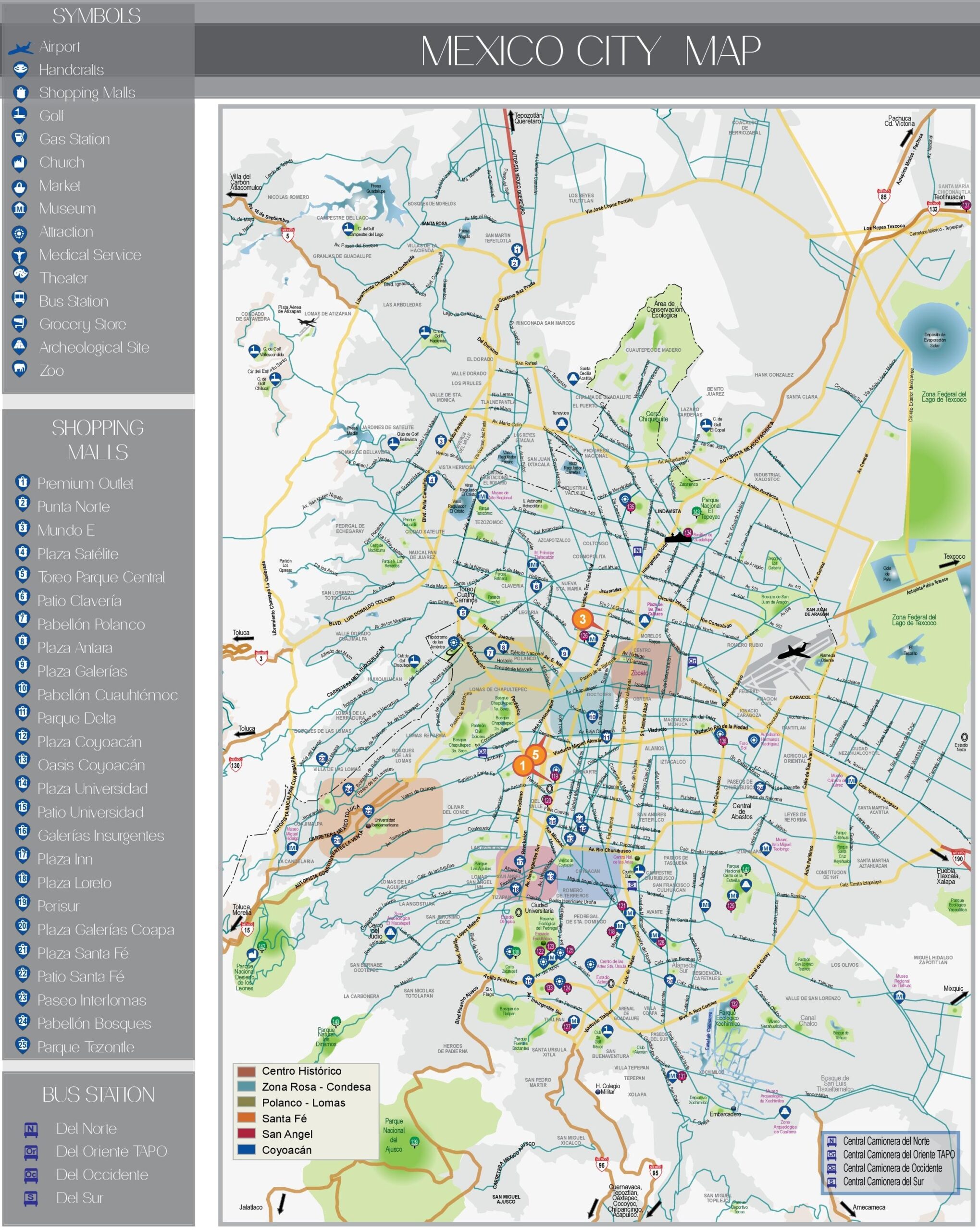 Our printable attraction map of Mexico City includes all the top landmarks, museums, parks, and more. From the historic Zocalo to the vibrant neighborhoods of La Condesa and Roma, you’ll have all the information you need to plan your perfect itinerary.