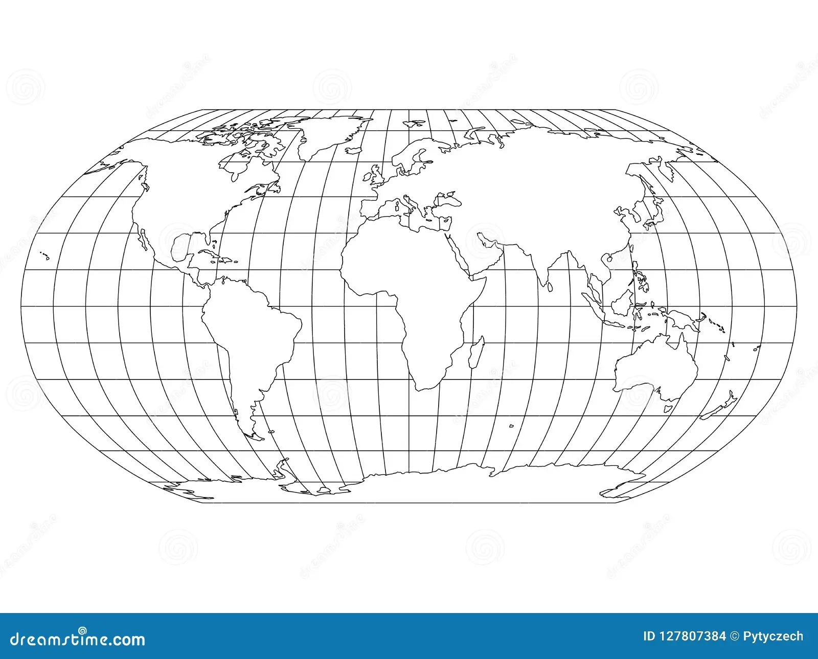World Map In Robinson Projection With Meridians And Parallels Grid White Land With Black Outline Stock Vector Illustration Of Digital Black 127807384