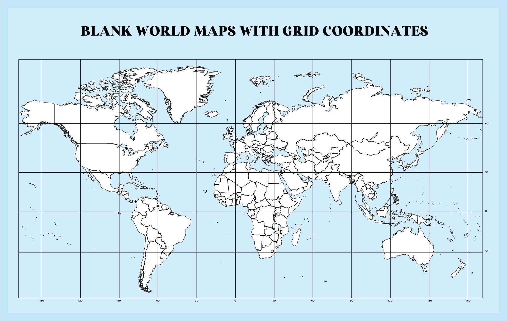 These maps typically feature a blank outline of the world’s continents and countries, along with grid lines that make it easier to locate specific areas. Grid lines can help with coordinates, measurements, and overall navigation on the map.