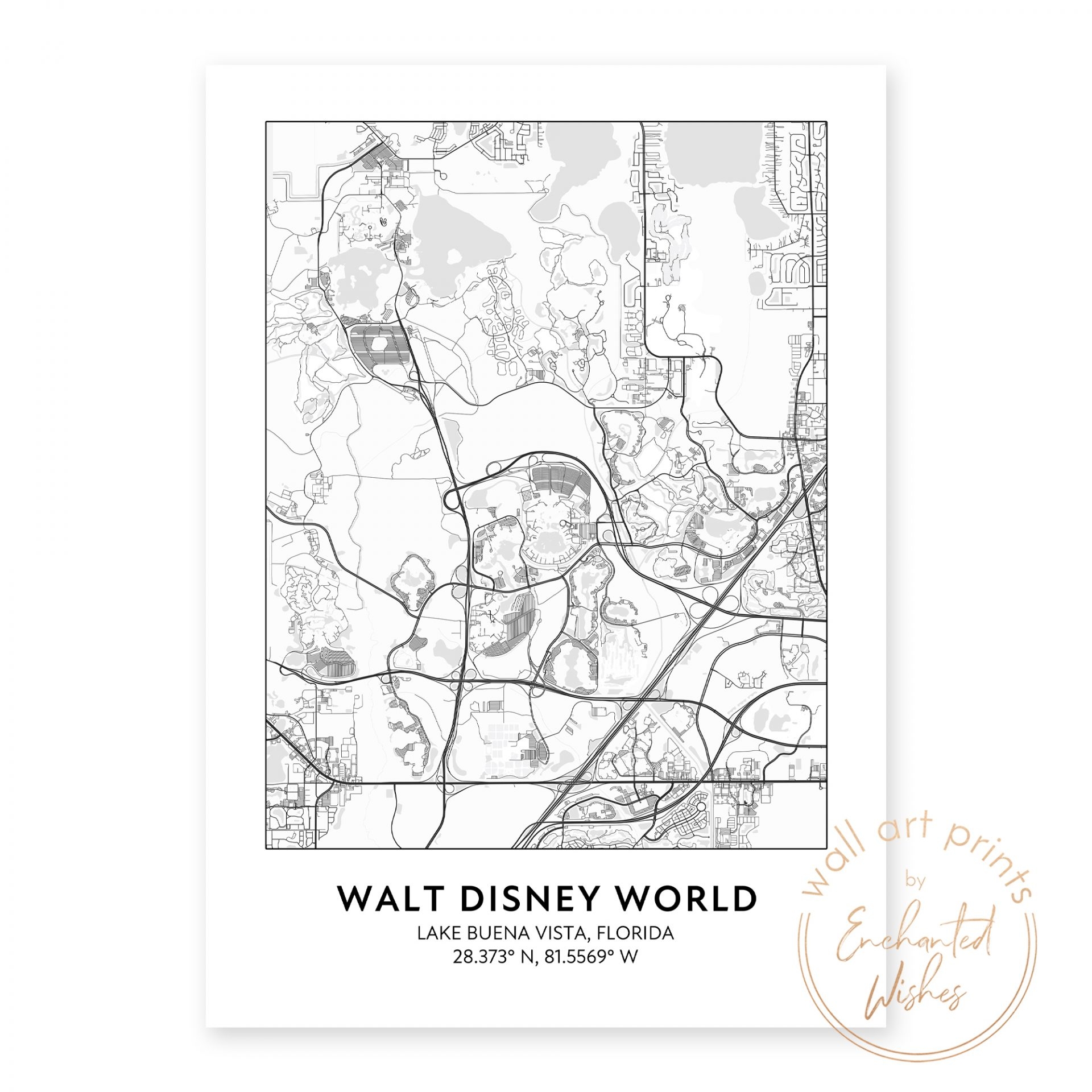 Disney World Road Map Print Printable Wall Art Or Printed Shipped