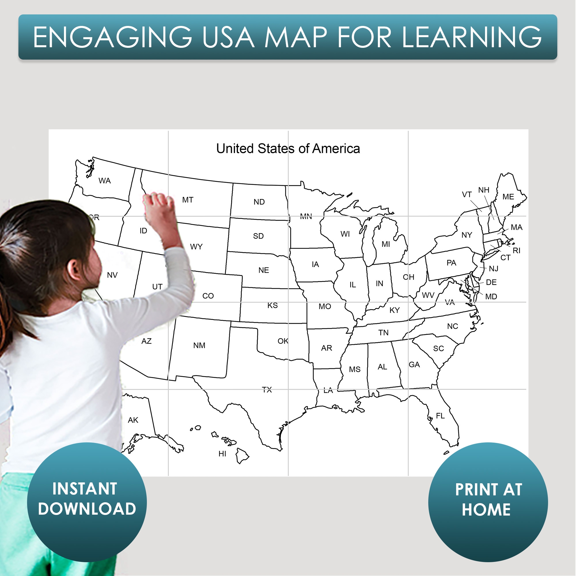 Giant Map Of The USA With State Names Print Cut And Assemble