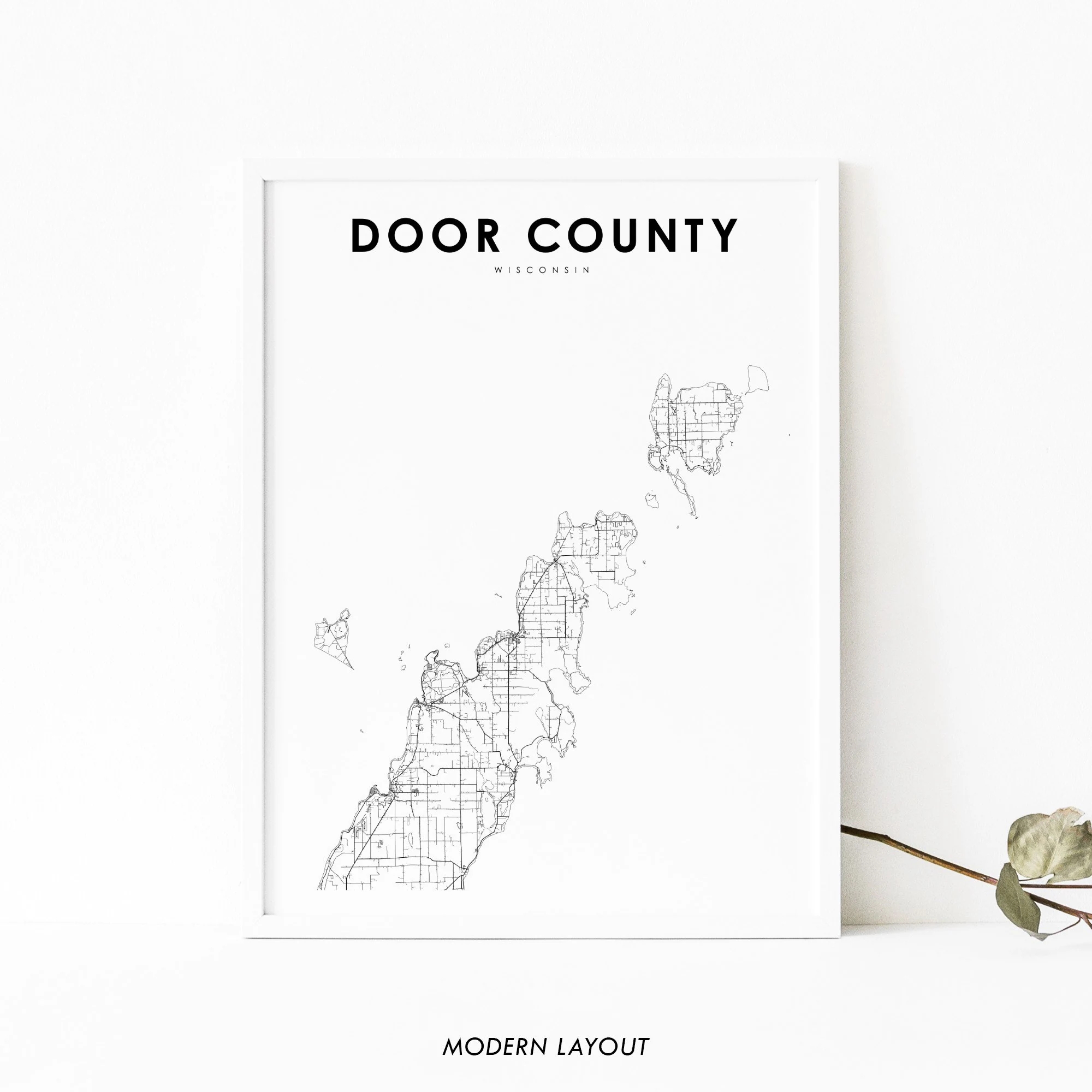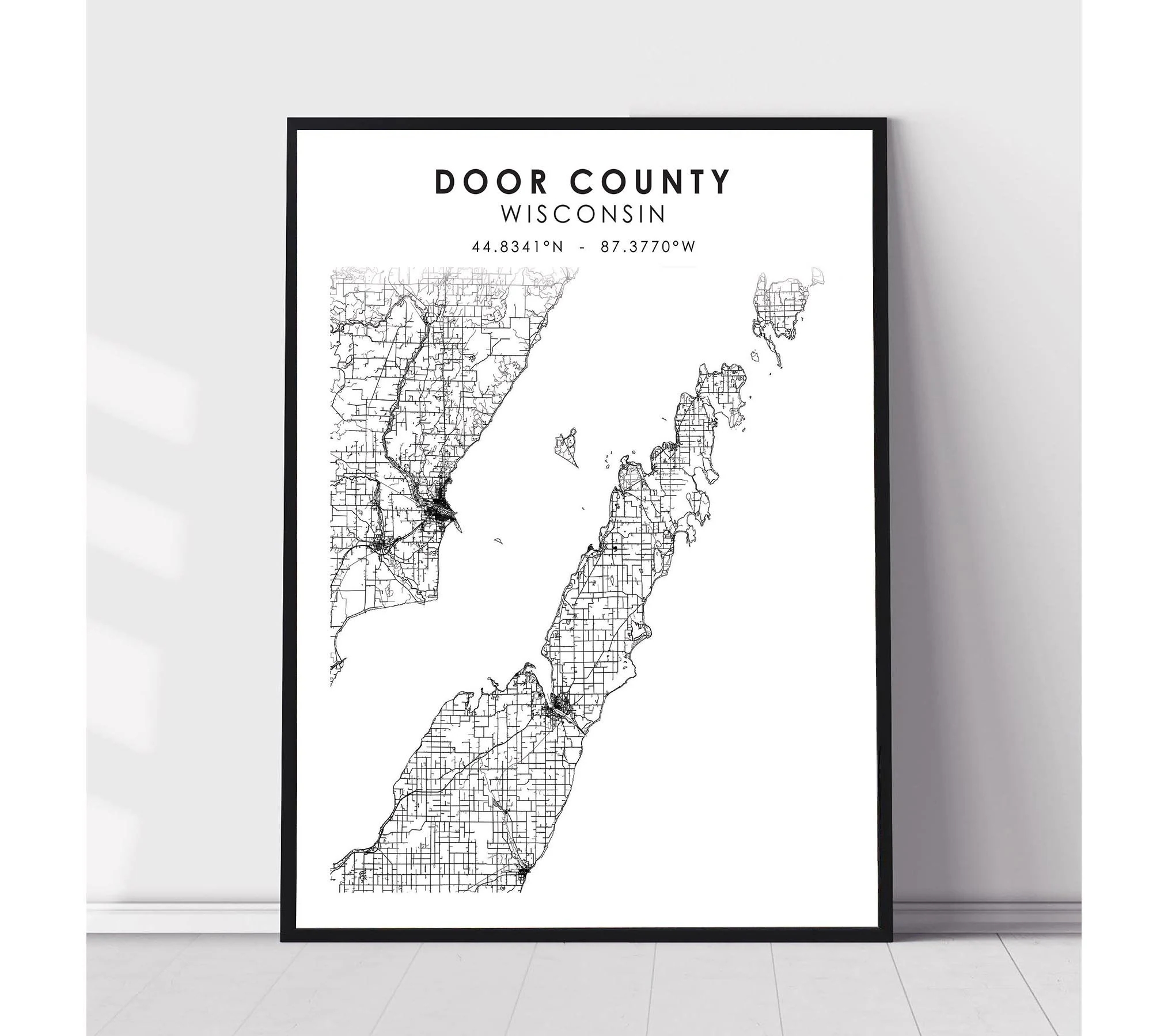 Door County WI Map Print Wisconsin USA Map Art Poster City Street Road Map Print Nursery Room Wall Office Decor Printable Map Etsy