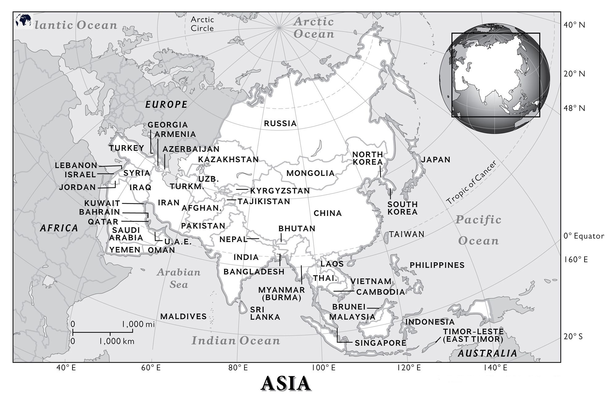 Free Printable Labeled Map Of Asia Physical Template PDF