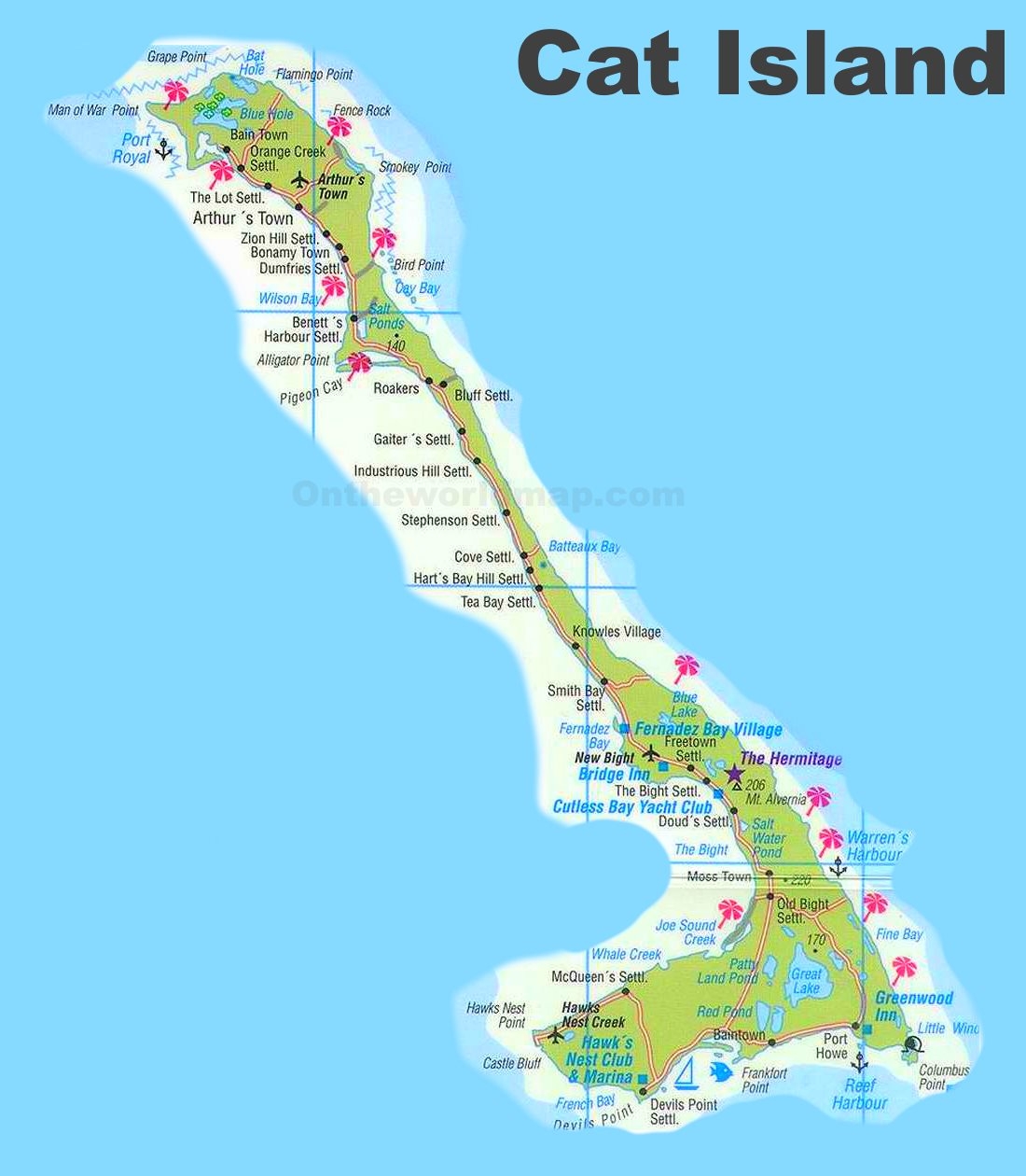 Cat Island Tourist Map Ontheworldmap