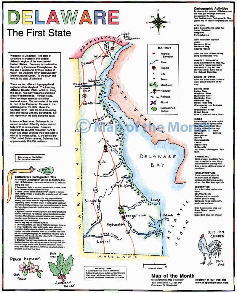 Delaware Map Blank Outline Map 16 By 20 Inches Activities Included