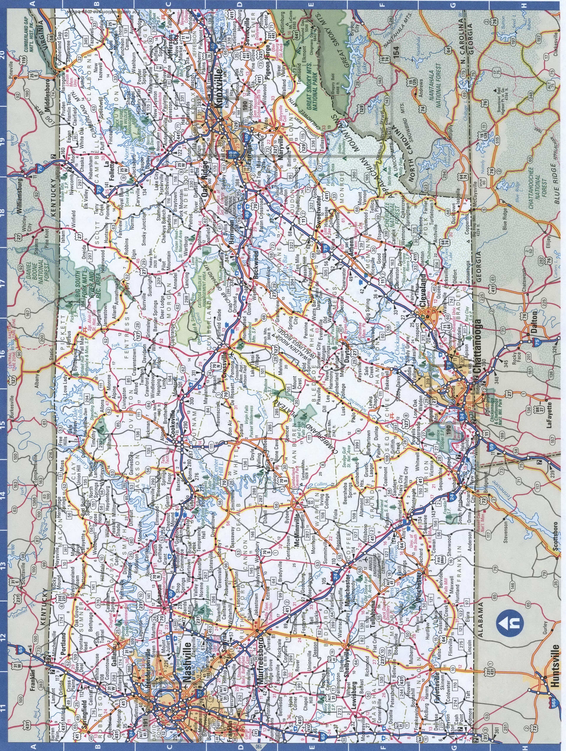 Map Of Tennessee eastern Detailed Road Map Of Tennessee eastern With Cities Villages And Rest Areas