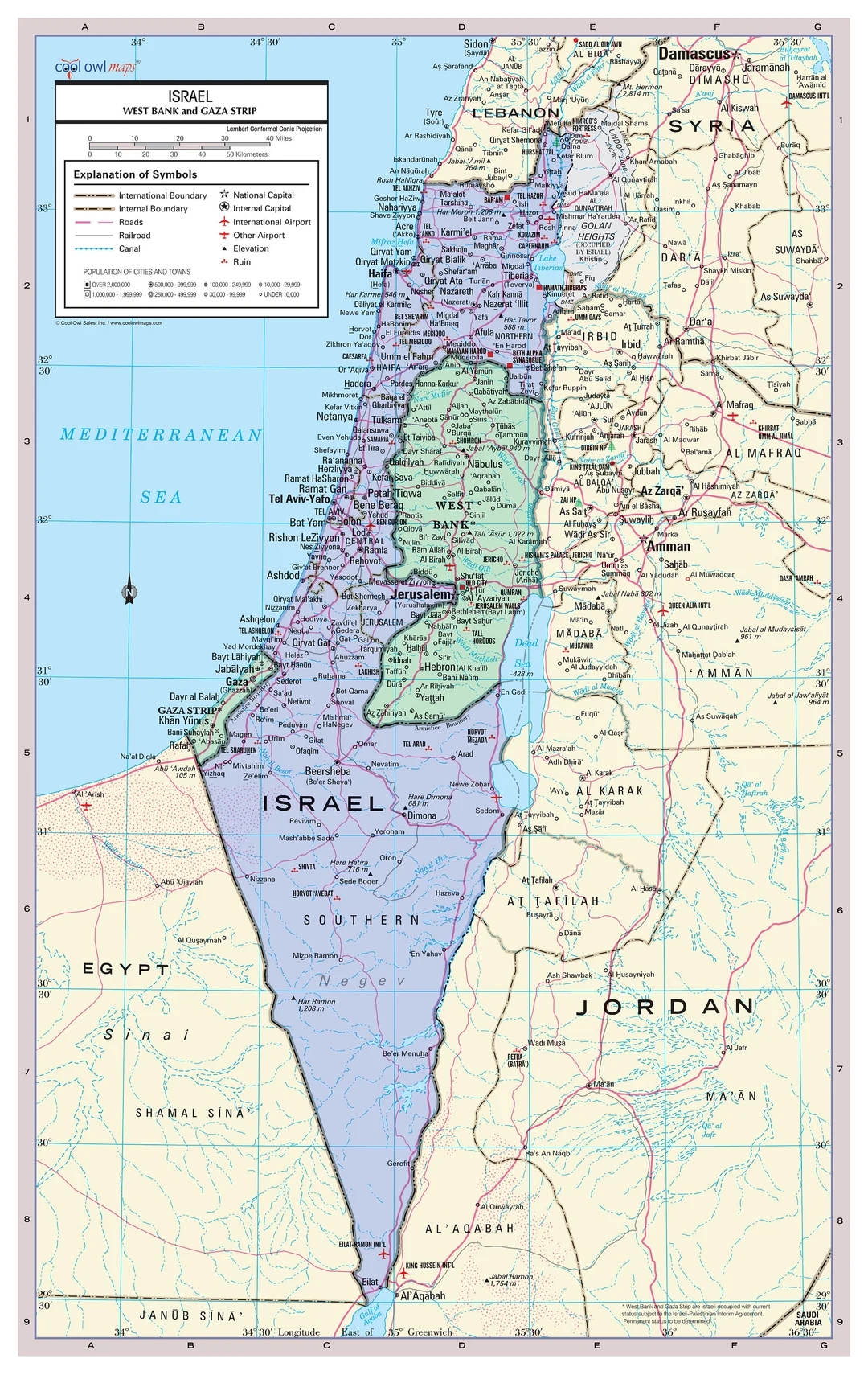 Israel With West Bank And Gaza Strip Disputed Territories Wall Map Poster Large Print Rolled 24w x38 h Etsy