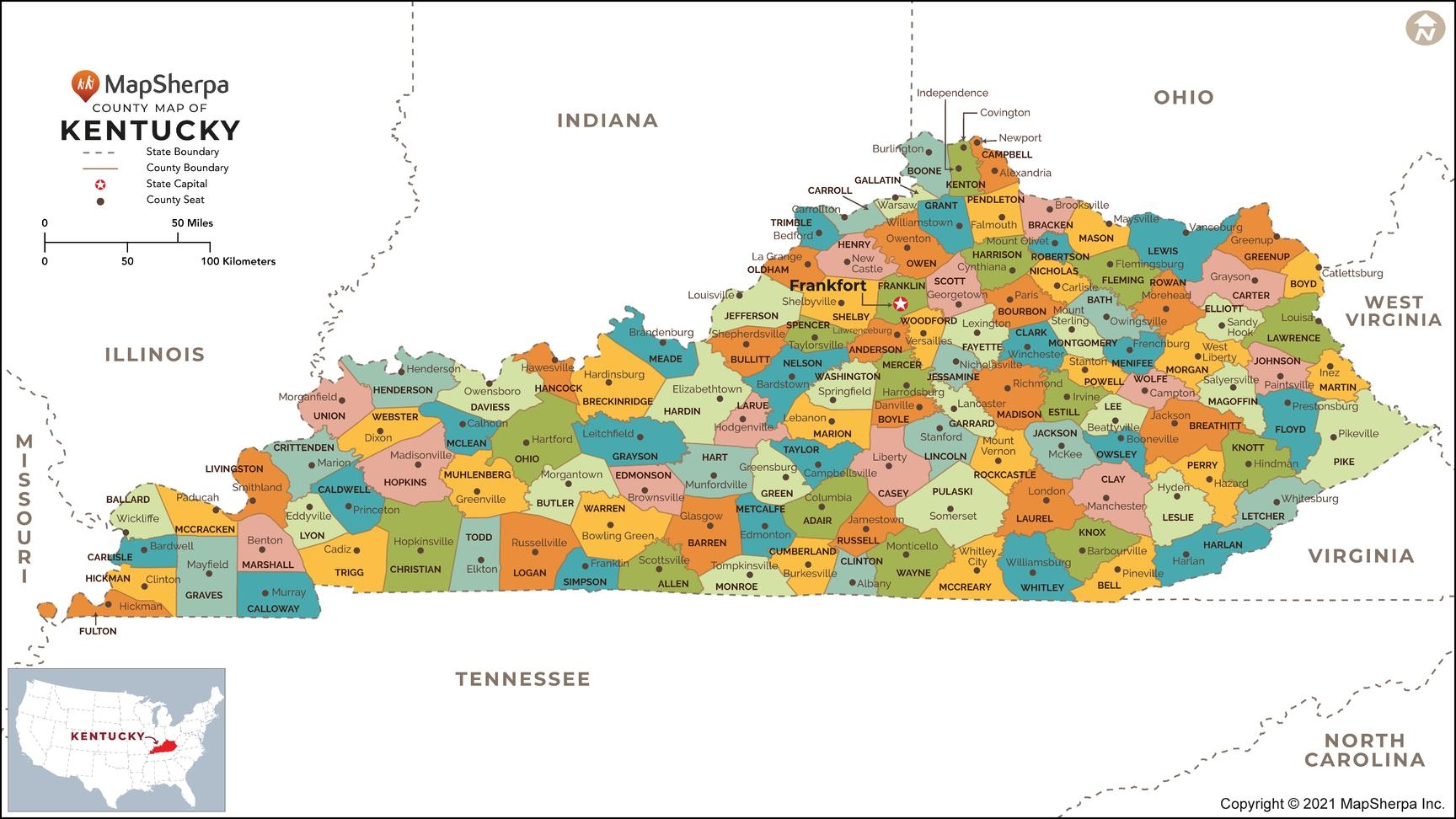 Kentucky Counties Map By MapSherpa The Map Shop
