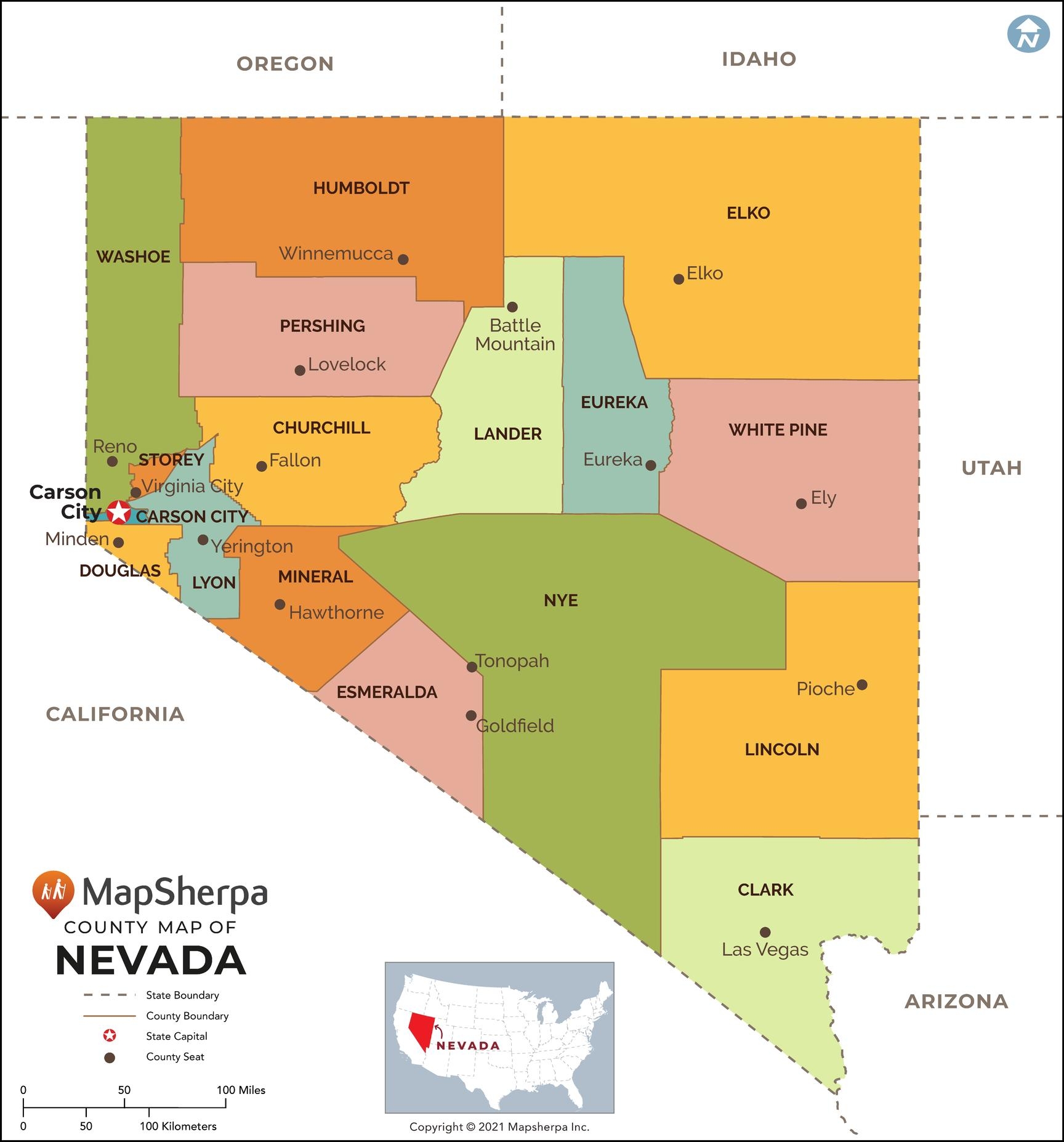 Nevada Counties Map By MapSherpa The Map Shop
