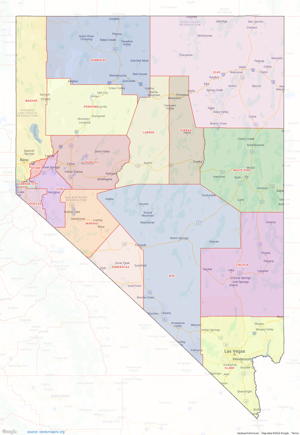 Printable Map Of Nevada Counties
