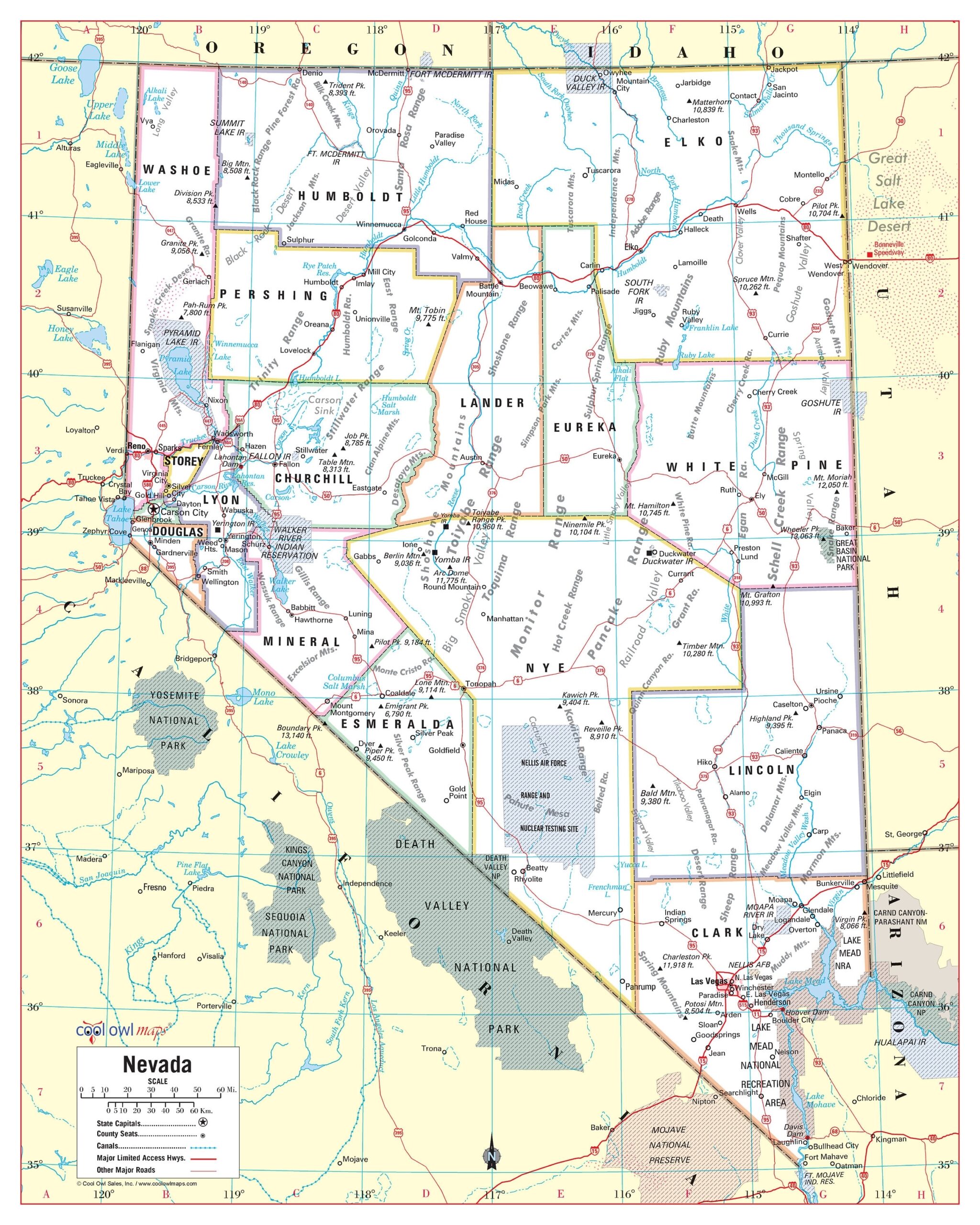 Printable Map Of Nevada