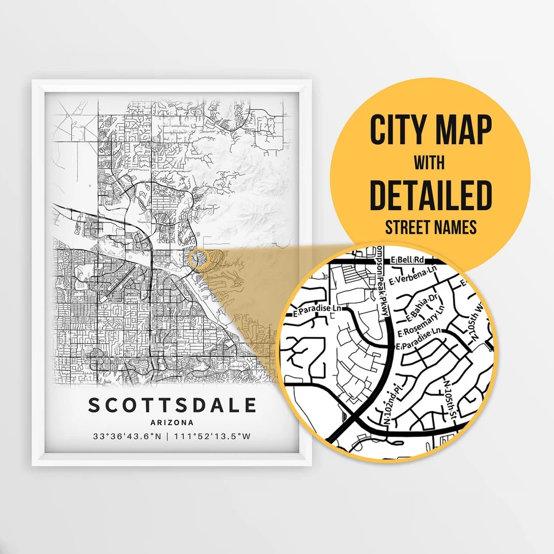 Printable Map Of Scottsdale Arizona USA With Street Names Instant Download City Map Travel Gift City Poster Road Map Print Etsy