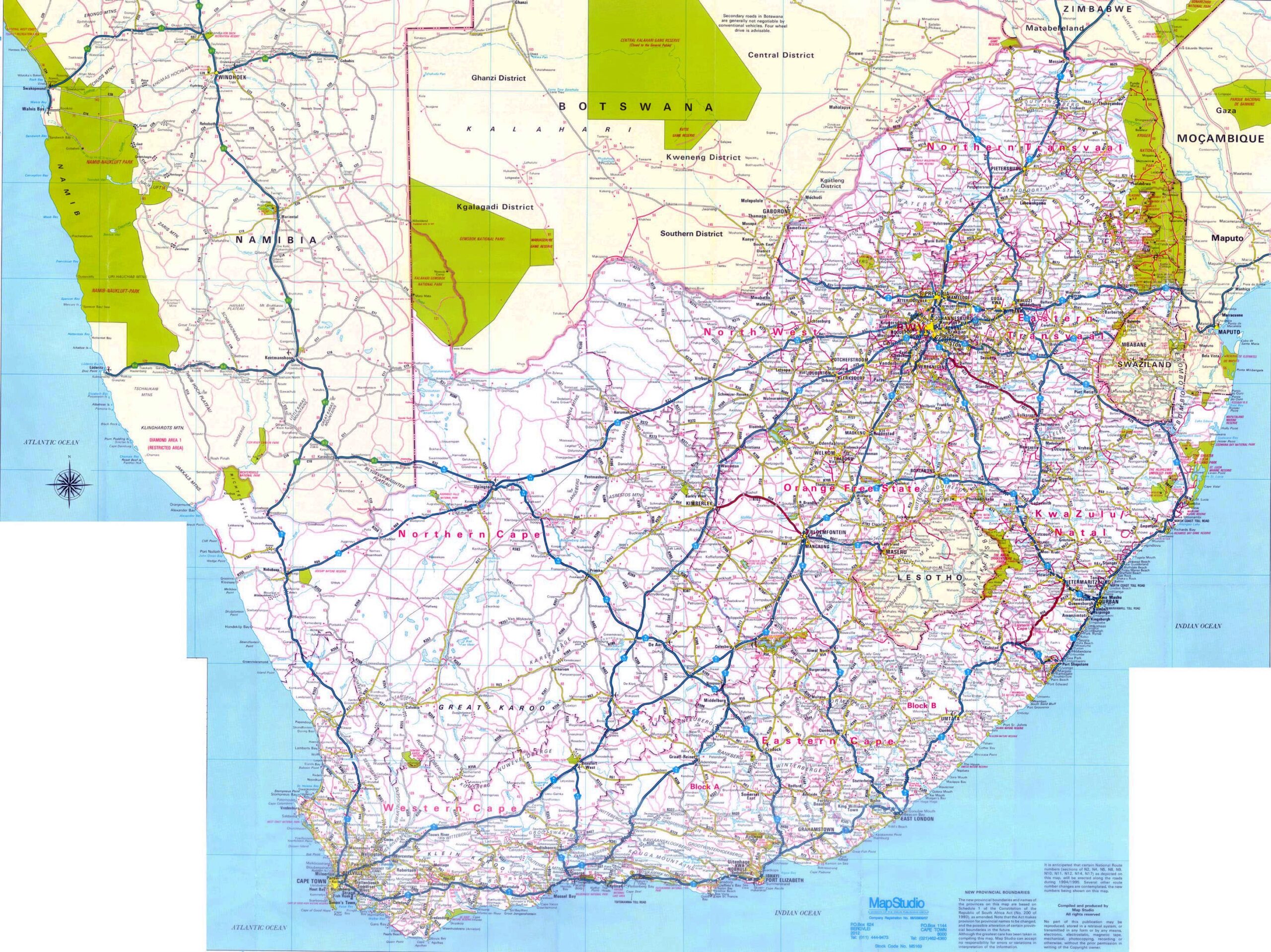 Large Detailed Road Map Of South Africa South Africa Large Detailed Road Map Vidiani Maps Of All Countries In One Place