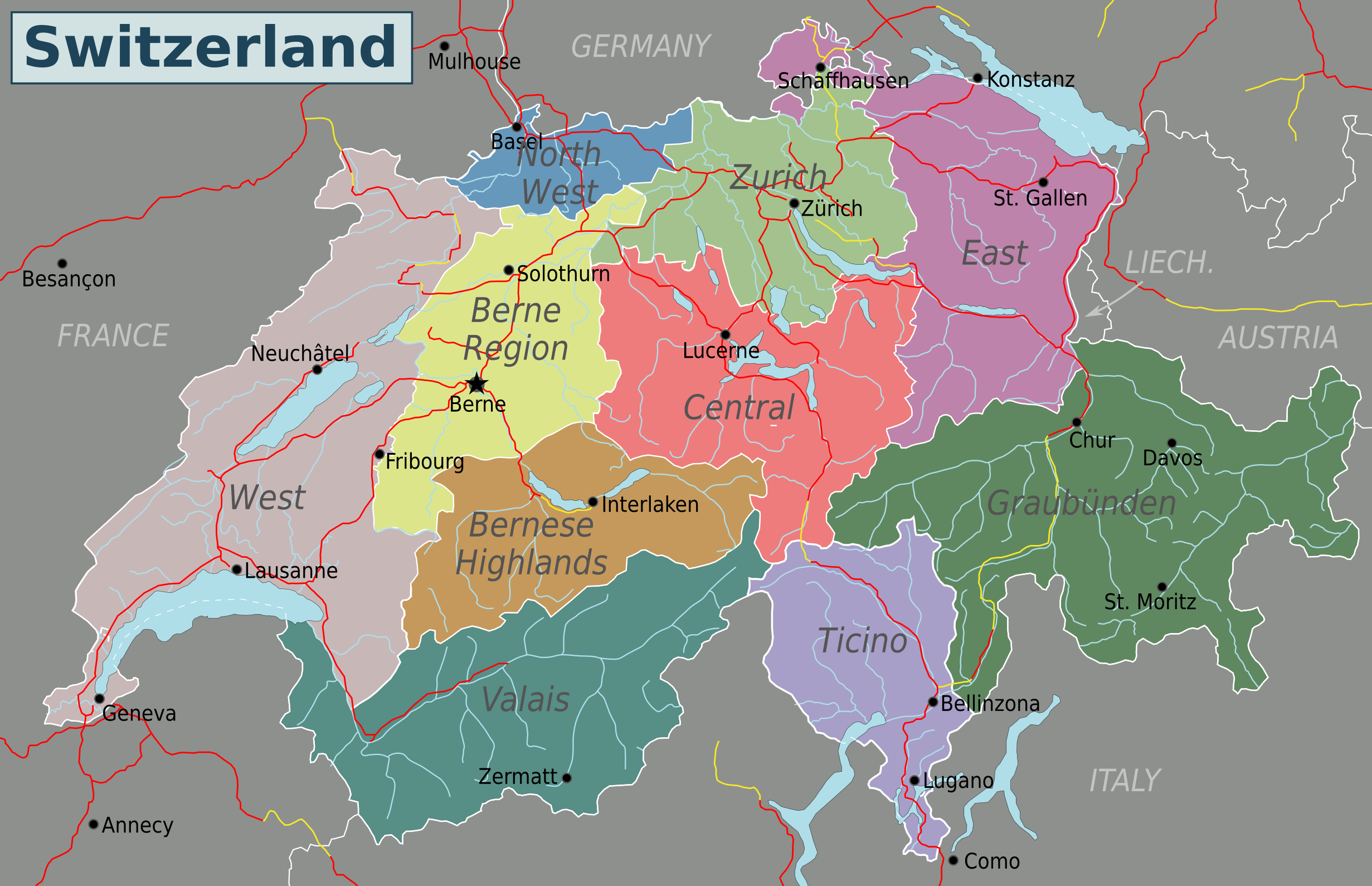 Printable Map Of Switzerland In English