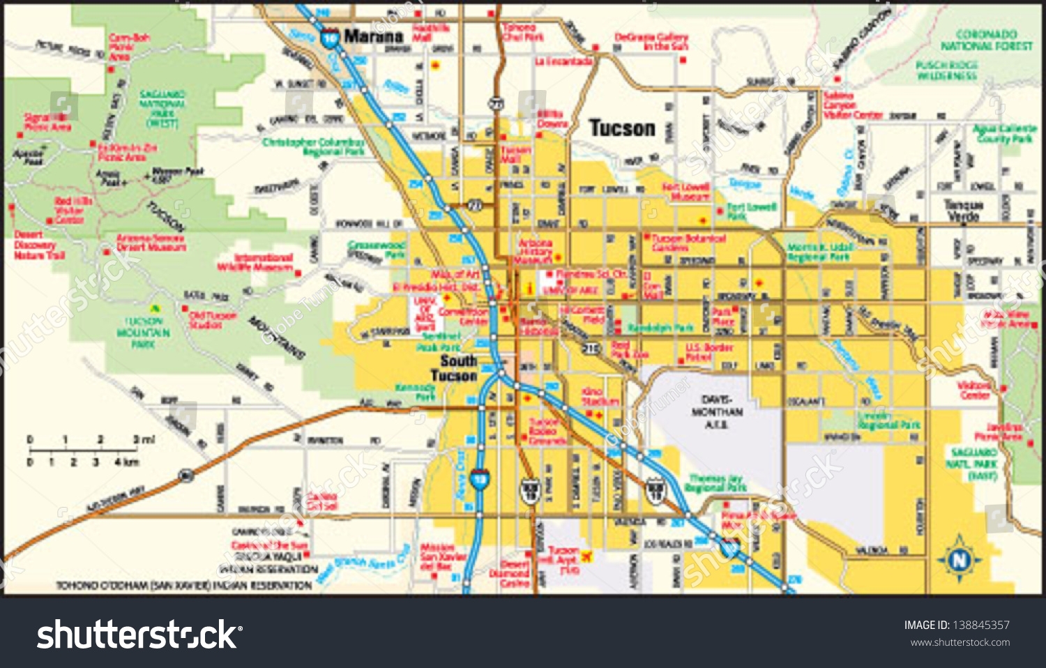 Tucson Arizona Area Map Stock Vector Royalty Free 138845357 Shutterstock