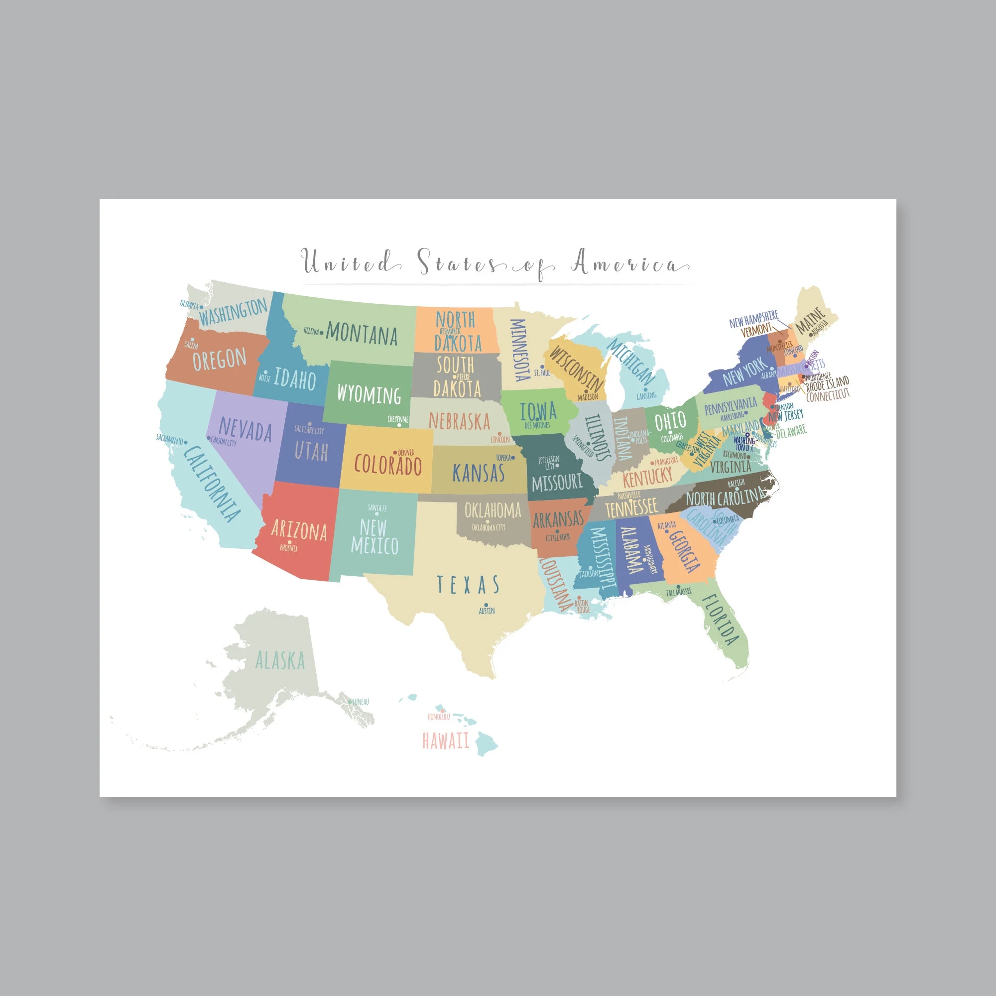 Large US Map PRINTABLE State Capitals Map USA Map Wall Art Usa Map For Kids Home Kids Room Decor P453B Etsy