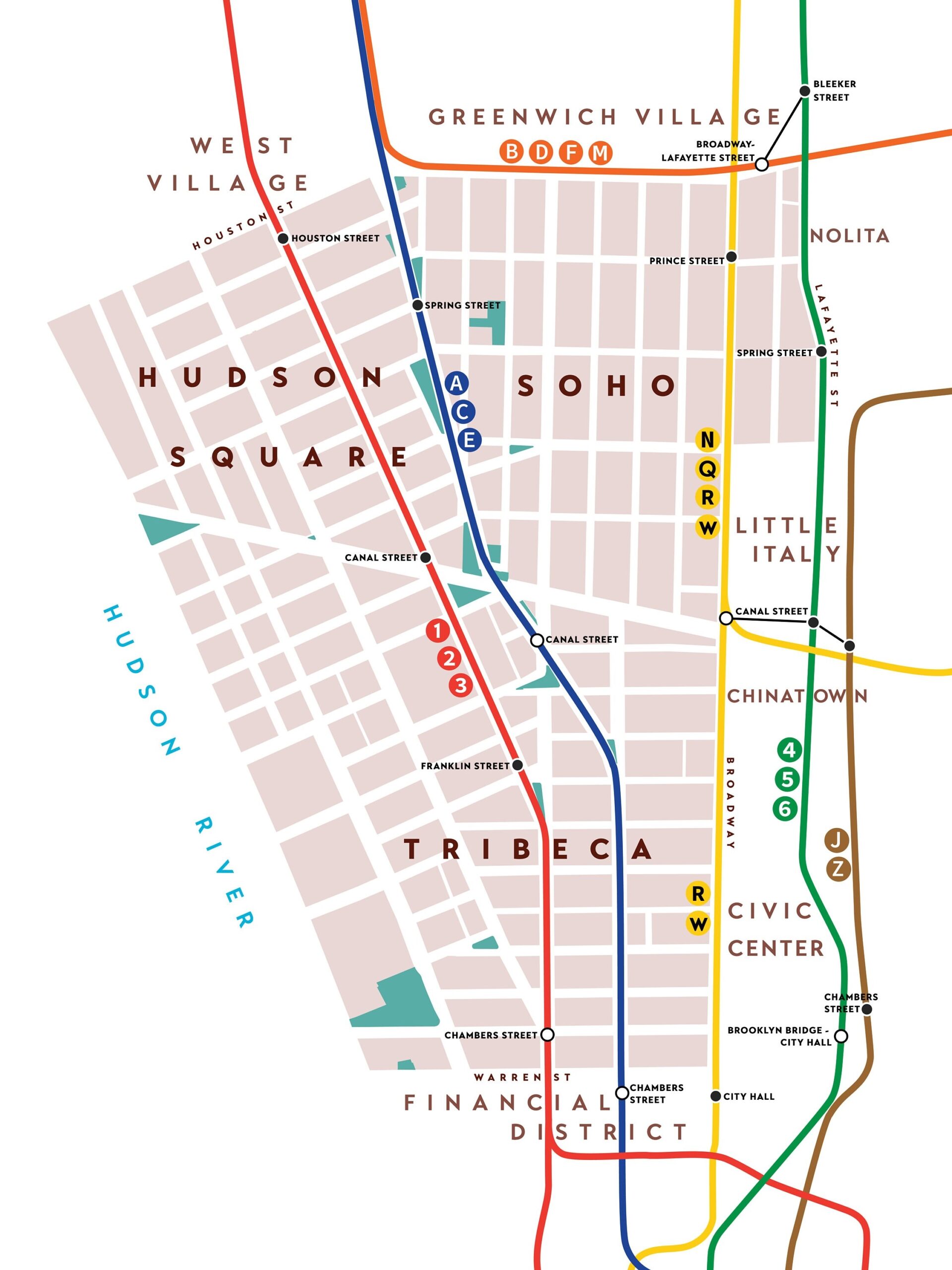 Soho Tribeca Hudson Square Neighborhood Map Print Manhattan New York City Etsy
