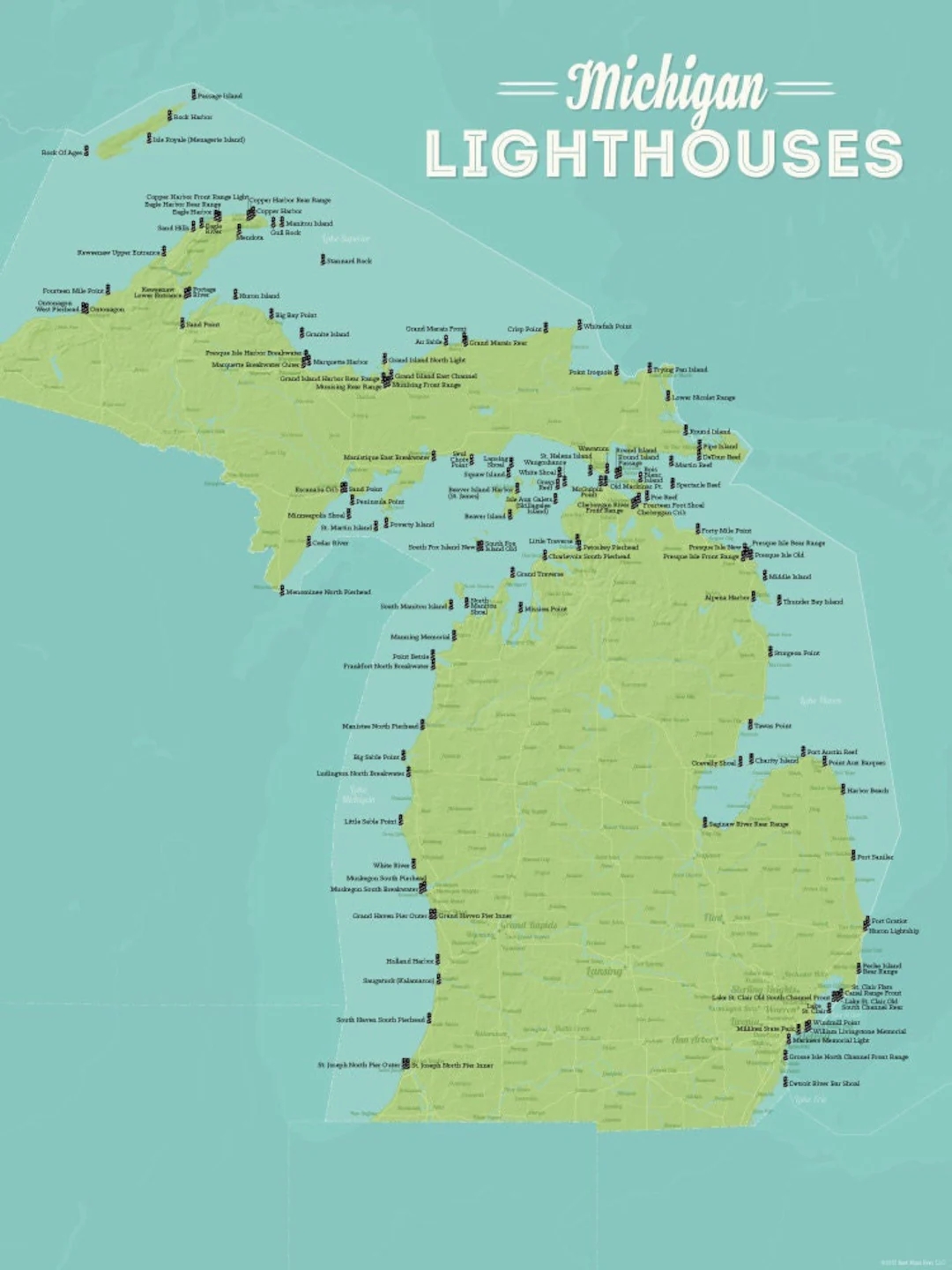 Michigan Lighthouses 18×24 Poster Etsy