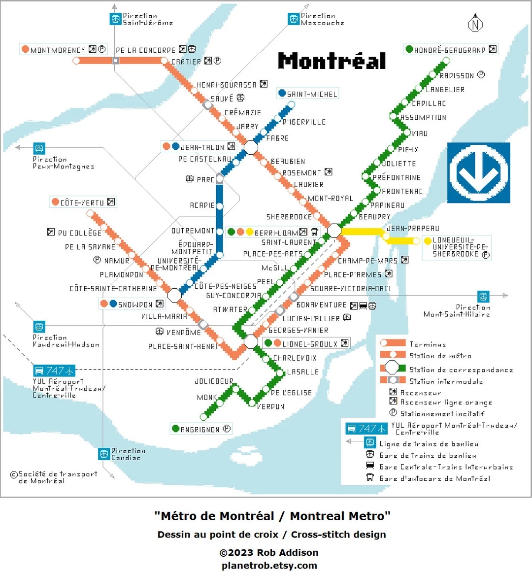 Montreal Metro Map Cross stitch Pattern pattern Keeper Compatible PDF Download Etsy
