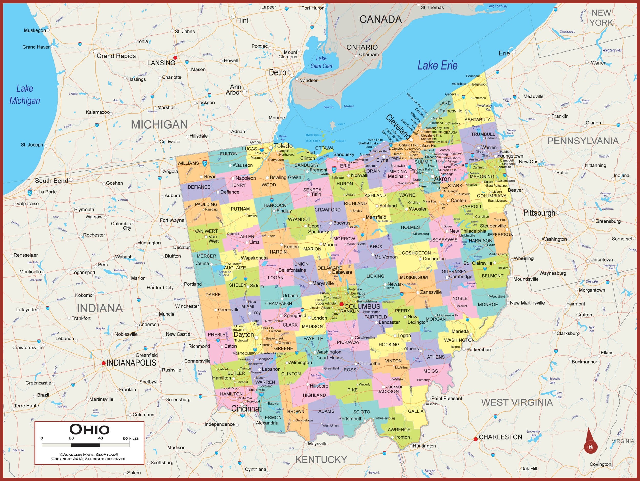 Amazon 60 X 45 Giant Ohio State Wall Map Poster With Counties Classroom Style Map With Durable Lamination Safe For Use With Wet Dry Erase Marker Very Popular For