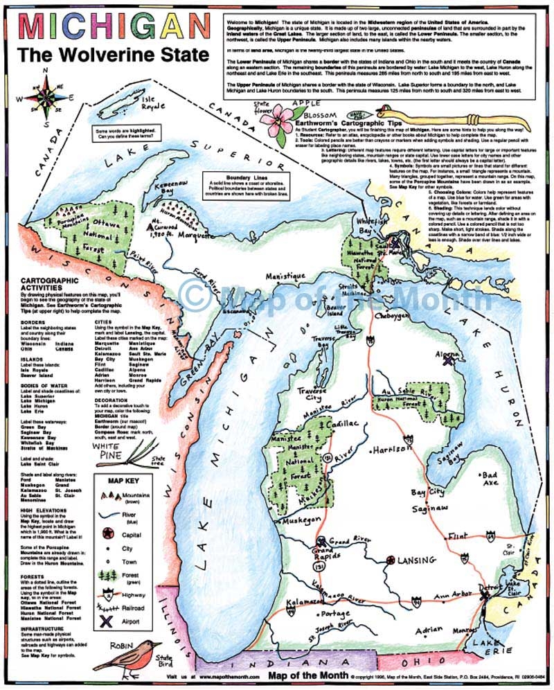 Michigan Map Blank Outline Map 16 By 20 Inches Activities Included