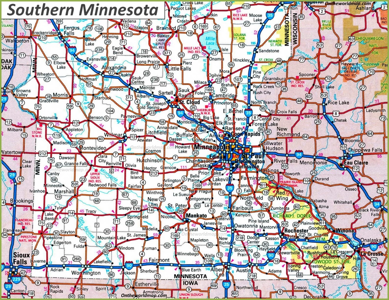 Map Of Southern Minnesota Ontheworldmap