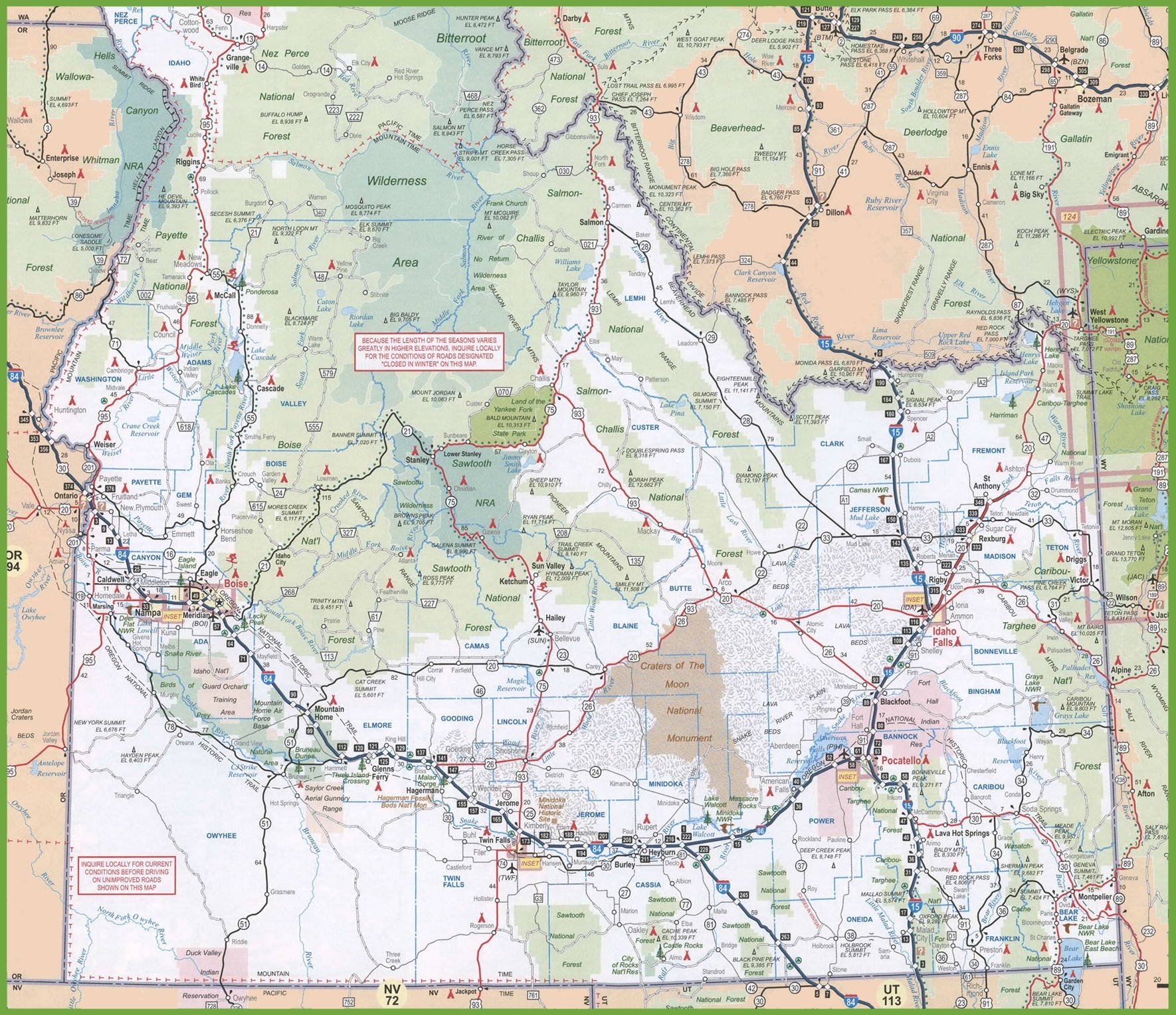Large Detailed Roads And Highways Map Of Idaho State With All Cities Vidiani Maps Of All Countries In One Place
