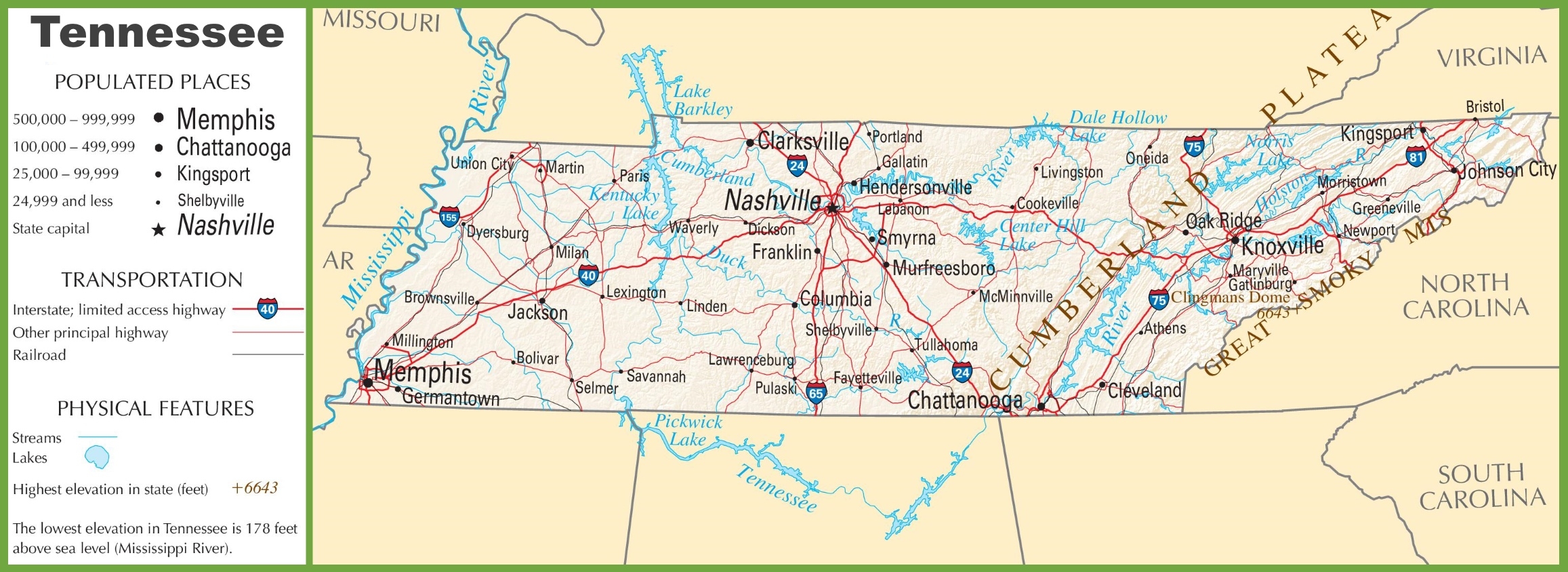 Tennessee Highway Map Ontheworldmap