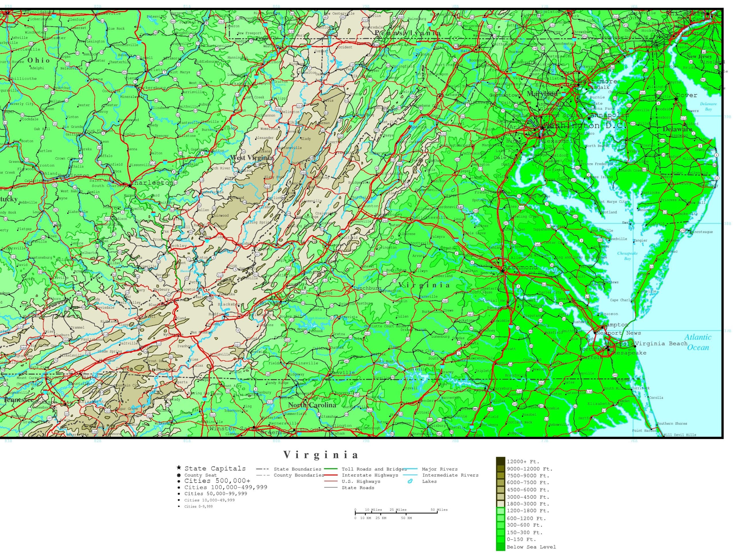 Virginia Elevation Map