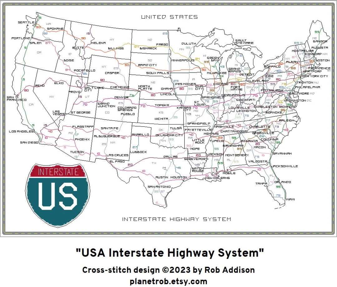 US INTERSTATE Highway System Cross stitch Map Pdf Download USA United States Pattern Design Roads Travel Etsy Sweden