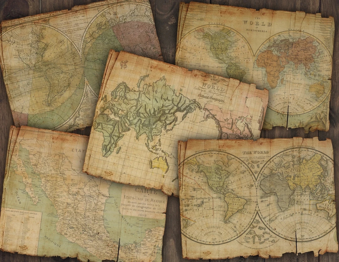 Printable Vintage Map Pages Old Junk Journal Paper Digital Journaling Supplies Grunge Ephemera Antique World Map Sheet Collage Set Etsy