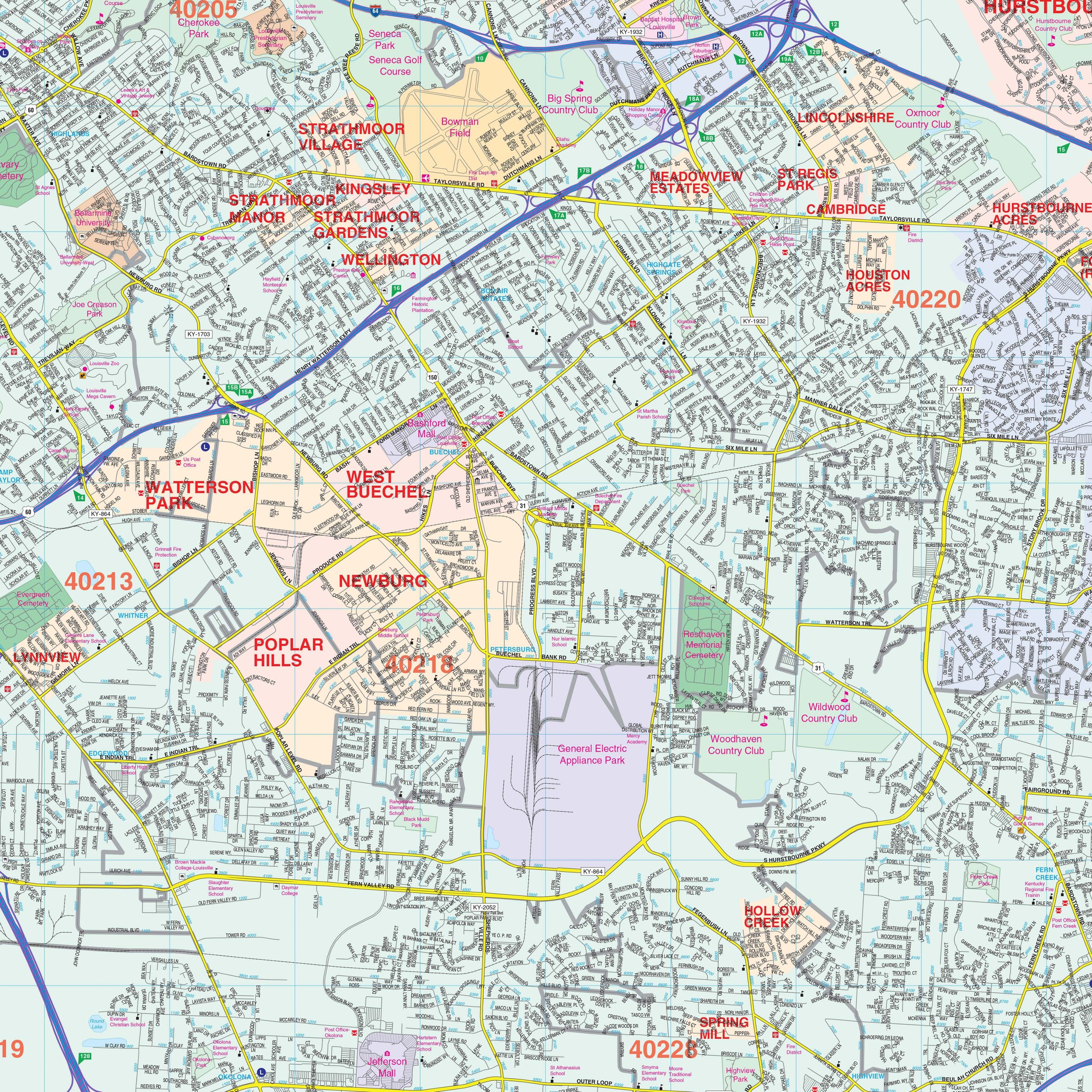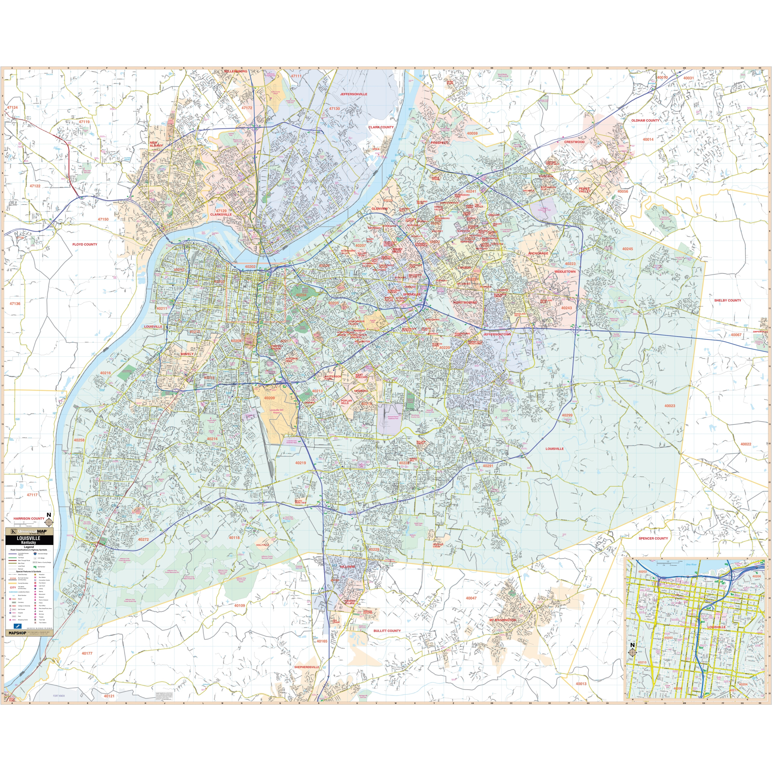 Louisville Jefferson County KY Wall Map By Kappa The Map Shop