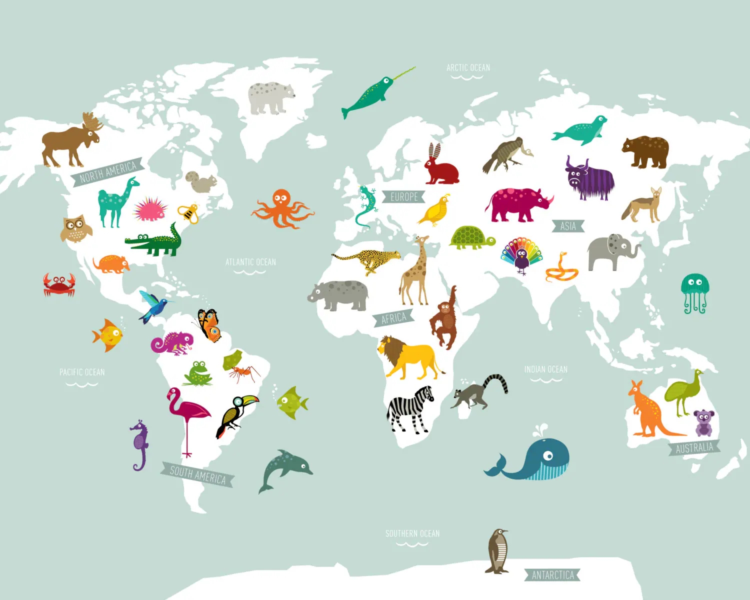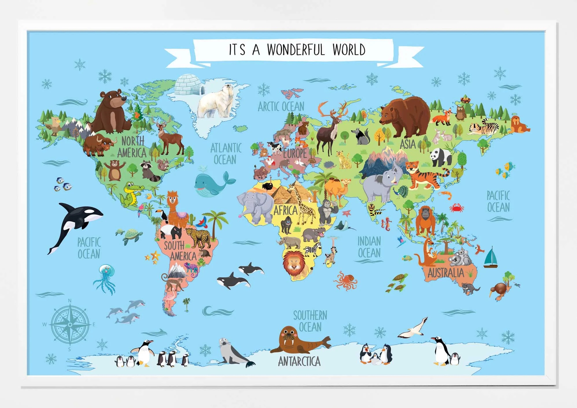 World Animal Map Wall Print Digital Download Unique Toddler Toys Nursery Map Nursery Toddler Wall Art Wall Art Childrens Room Etsy