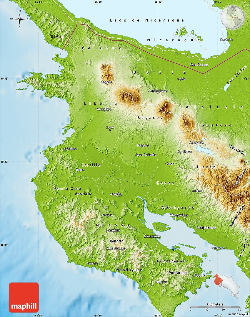 Physical Map Of Guanacaste